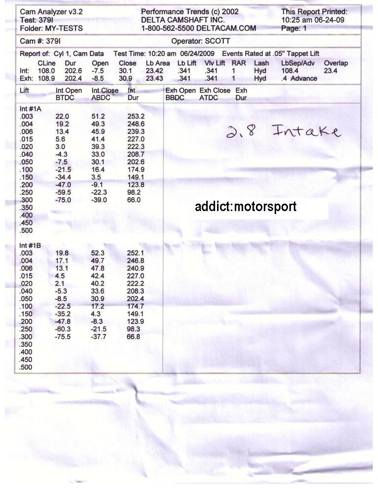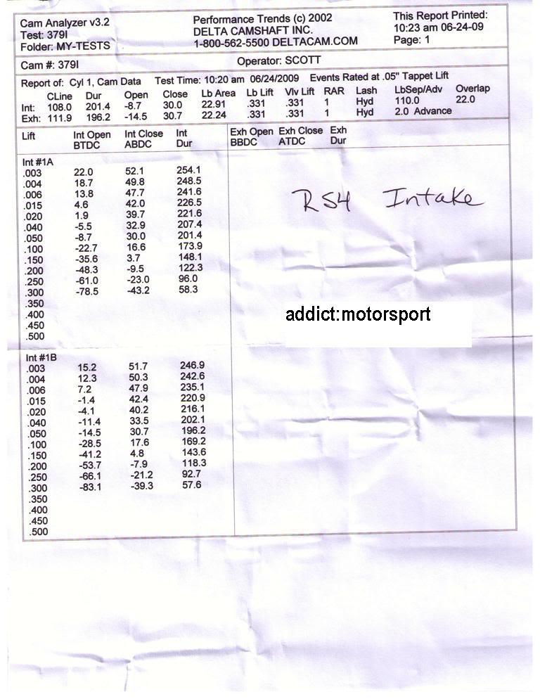 Noissa 9,4/11,0 nokissa on vähemmän overlappia, imu sulkeutuu aiemmin ja pako aukeaa aikaisemmin. Samansuuntaiset erot on nähtävissä myös vakionokissa RS4/S4 vs. 2.8V6. Imupuolella on (mainos)duraatiota vähemmän mutta maksiminostoa on enemmän joten ramppi lienee jyrkempi. Positiivinen asia mutta venttiilikoneisto joutuu korkeilla kierroksilla kovemmille.