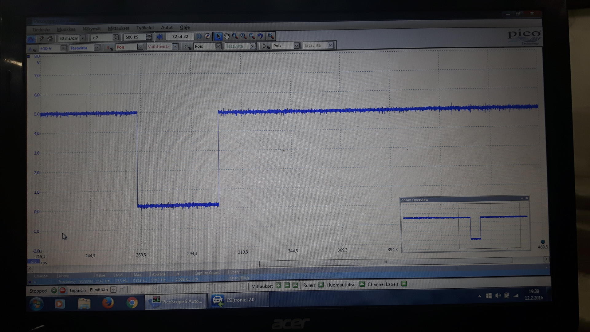 Hall-anturin signaali näkyy kuvassa ja olikin mielestäni ihan sellainen kuin pitääkin.