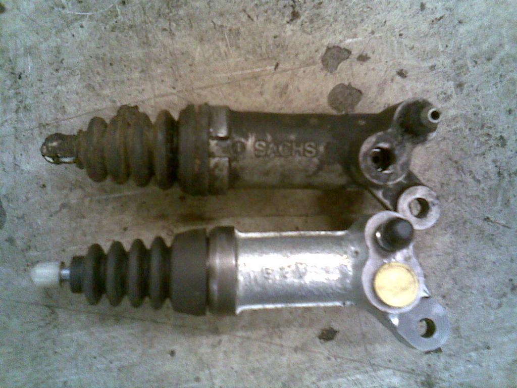 Sepässe itelläkin oli kun ei täristänyt sitten yhtään, niin ei osannut tuollaista vikaa olettaa ja kävinkin läpi kaikki mahdolliset paikat ennen kytkimen aukaisemiseta ja tämä paljastui viaksi. Ensimmäinen "vinkki" tästä viasta ilmeni kun aloin vaihtamaan työsylinteriä (ihan vain varmuuden vuoksi vaikka vuotoja ei ollutkaan) eikä se meinannut mennä millään paikalleen.
