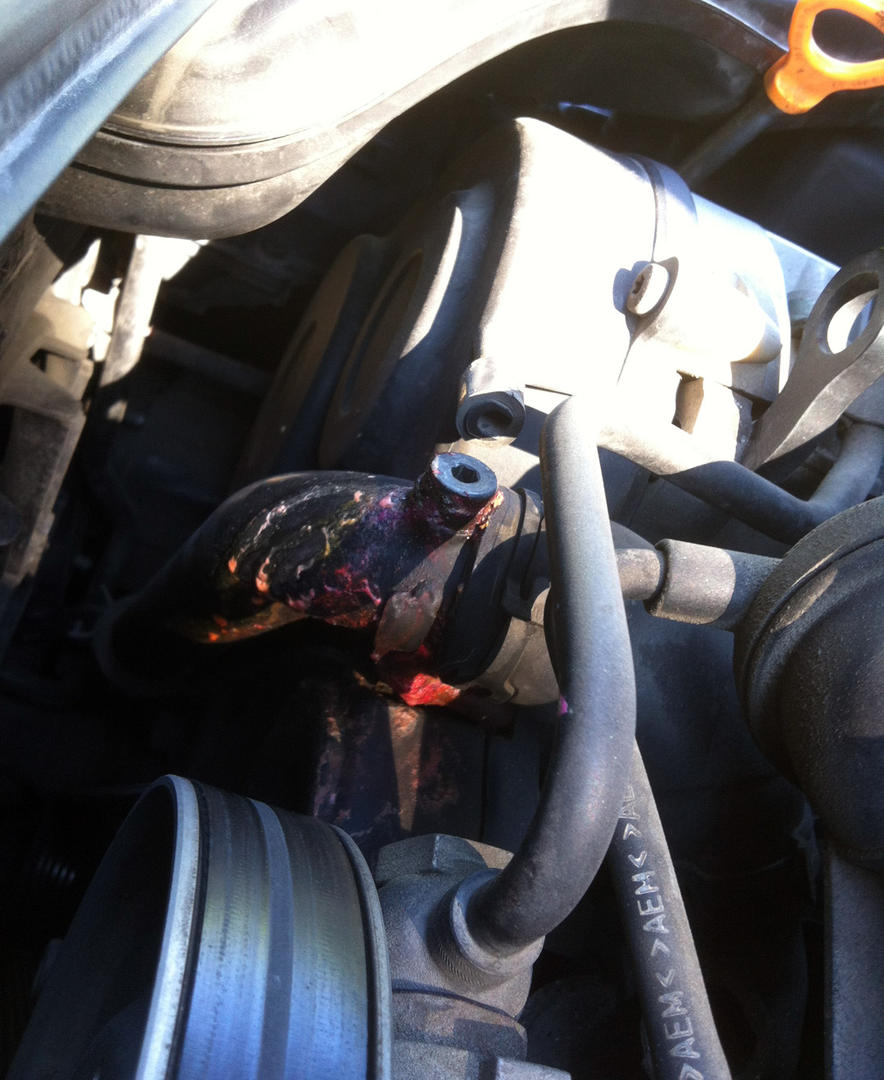 Löysinpäs jäähdytys nestevuodon osaakos kukaan sanoa mikä tuo vuotava osa on? Kuvassa moottorin tuennan reiästä näkyvä. Kuskin puoli ja autona 2002 a4 3.0 bensakoneella.