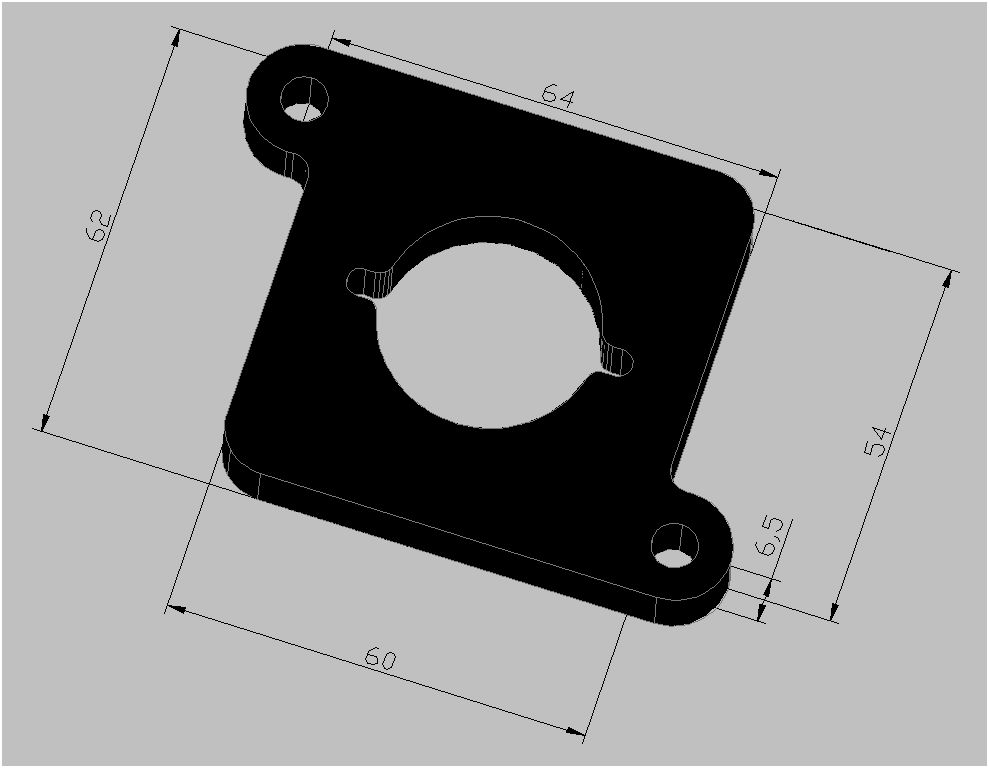 • Tossapa nyt jotain näpertelyä adapterista. Ei ole sitten reikien paikat varmaan kohdillaan, mutta niitähän voi tarkennella. Joku voisi tulostaa ton pdf:n ja kattoa, pitääkö mitat siinä paikkansa, mulla ei ole printteriä. :) Jos ne heittää, niin on sitten varmaan joku plottauskämmi käynyt.