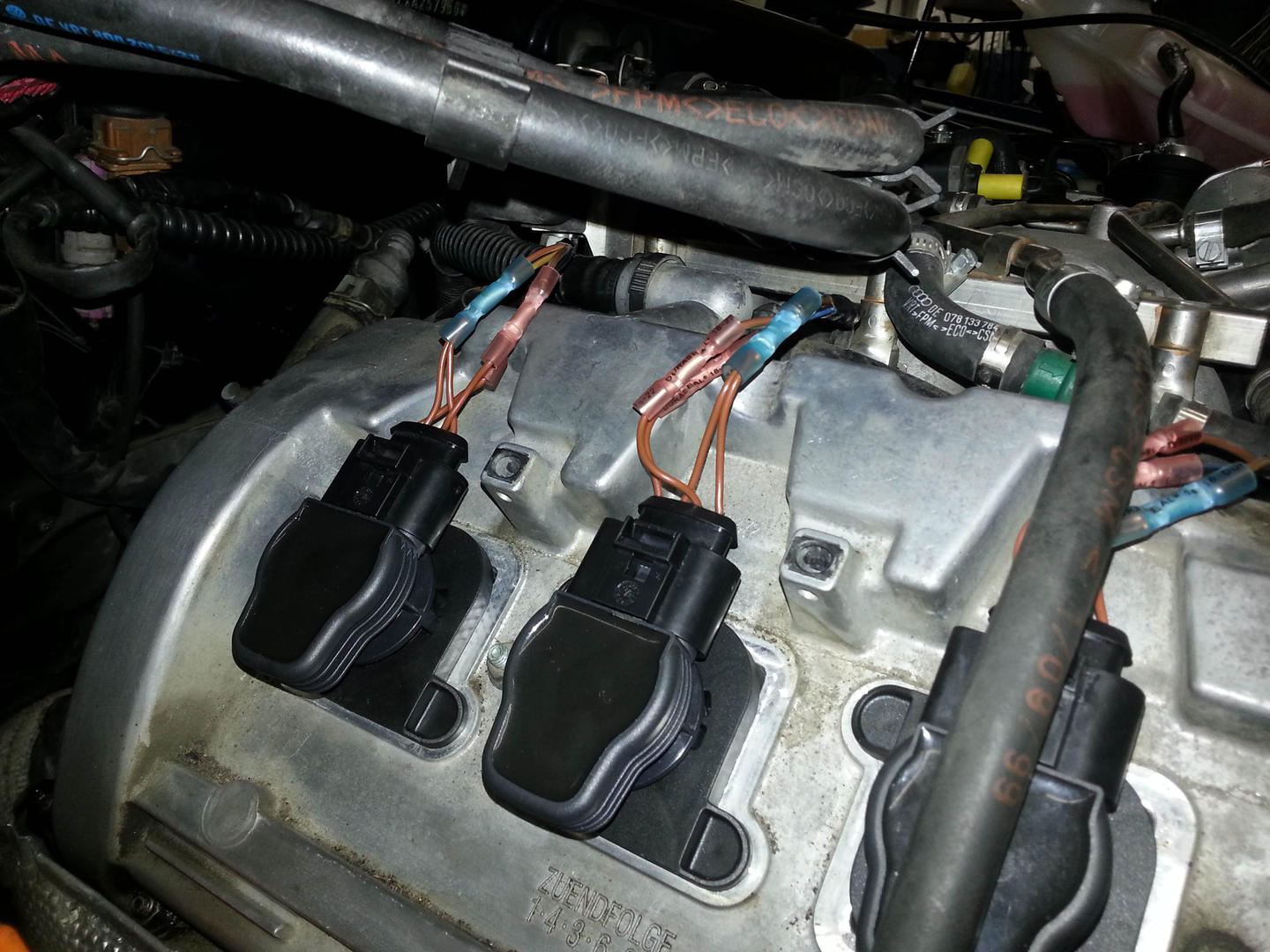 Joo eli adapterit eivät sovi paikoilleen vaikka ovat täsmälleen OEM kokoa. Noissa keskireikä on keskellä mutta kun puolan laittaa paikoilleen se puola jää hieman alemmas sitä keskikohtaa. Eli adapterin keskireikä ei voi olla symmetrisesti. OEM vw ei sovi mikäli ei halua vääntää puolaa ja tulppaa särki. (Se 8 millinen taitaa muuten passata juuri ja juuri.)