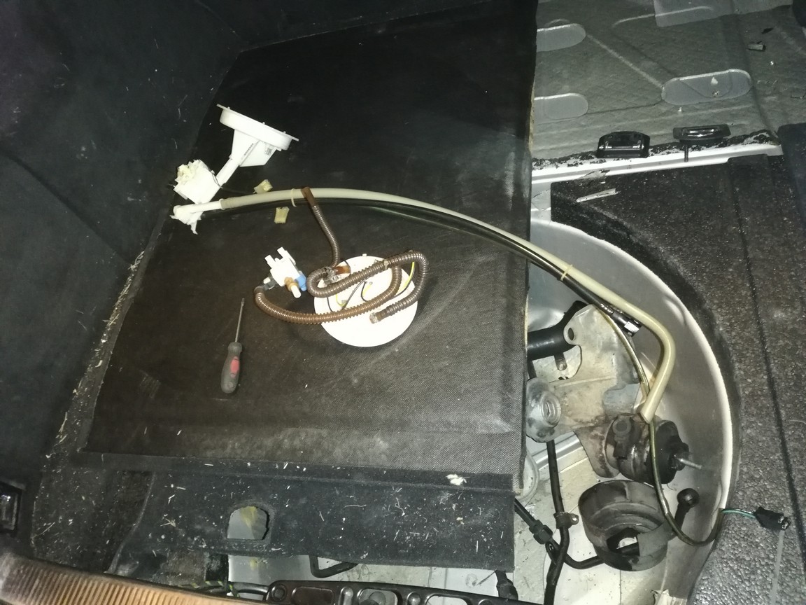 Jos täytyy irroittaa molemmat niin kannattaa jostain oppaasta/googlella opetella miten nuo sähköjohdot ja tankin sisällä olevat putket pitää oikeaoppisesti irroittaa ja kiinnittää, mä en sitä osaa neuvoa koska käytin enemmän voimaa kuin järkeä ja vahingossa ne irtos kaikki ehjänä :)