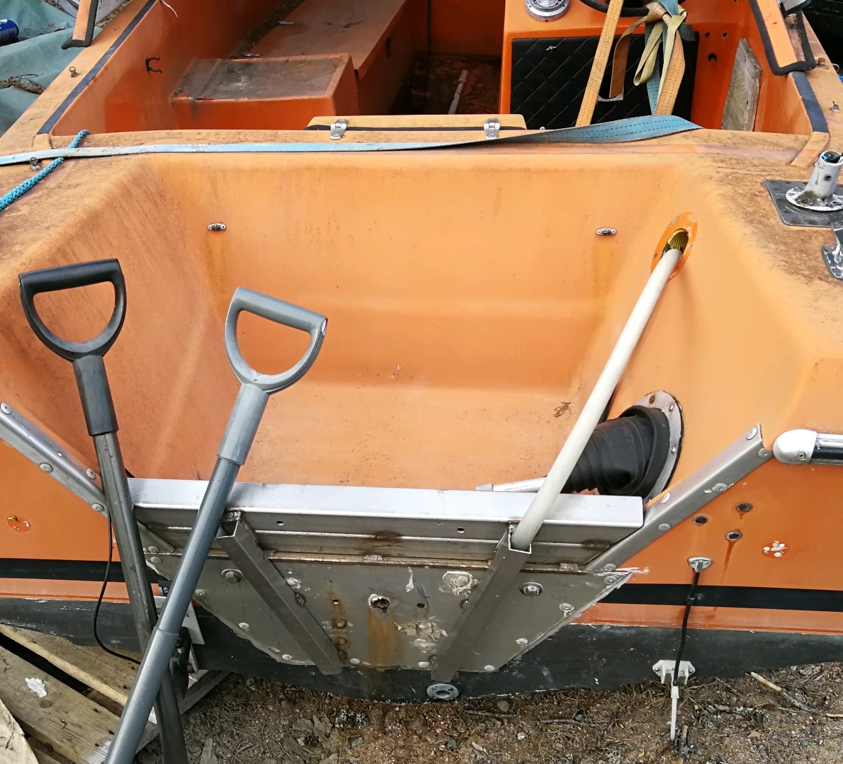 Tattista. Takalaita tuli ny ihan ok, ja on vetäisty kerroksella epoksia. Muuten valmiina mutta muutamaa reikää vaille. Kalasumpun pumppu saapui, sillekin pitää reikä nirhata sopivaan kohtaan...