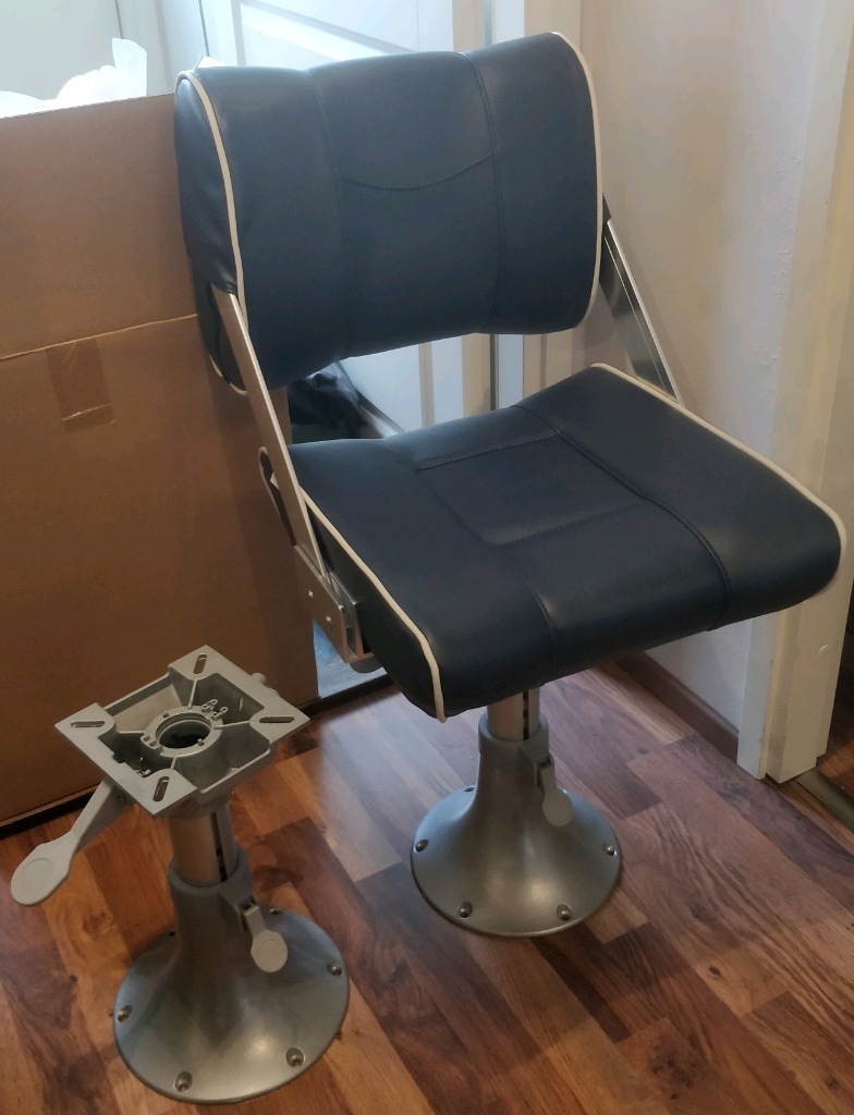Penkeiksi valikoitui kipattavalla selkänojalla olevat. Vene on sen verran kapea etten halunnut ympäripyöriviä penkkejä, kulku välistä olis jääny hyvin ahtaaksi silloin. Nyt kuitenki pystyy kippaan selkänojan ja istumaan takaperin tarvittaessa.