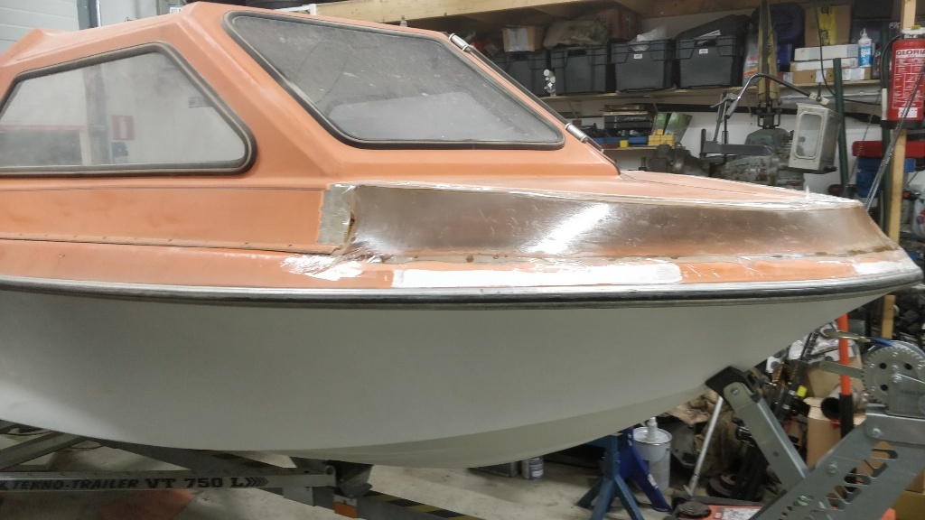Ekat vahvikekuidutukset tehty keulaan. Kuvasta näkee millaselta alkaa sivuprofiili näyttämään