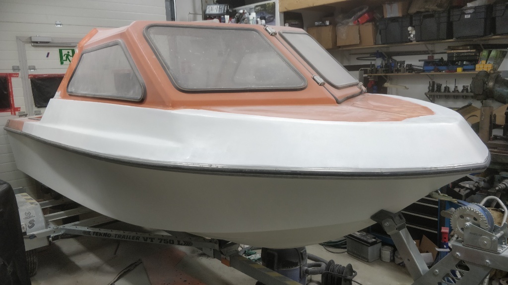Miten olisi joku 20 cm korkea tumman sininen raita kylkeen tai ikkunalinjan alle samaan tyyliin kuin 10v vanhoissa Yamarineissa? Toinen, että oletko miettinyt kevyttä myllytystä, jos pinta ei miellytä telan jäljiltä?