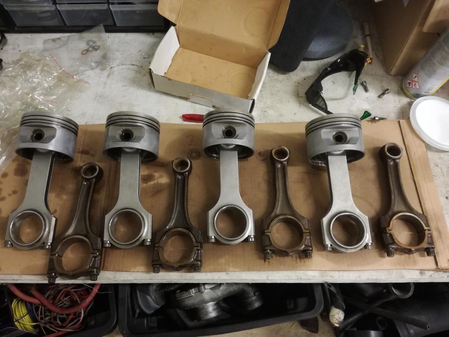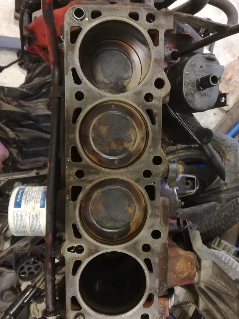 Kokeillaas kertoa jonkunlainen tarina tästä jäärata käyttöön hommatusta volvosta. Idea oli että projekti menee todella pienellä budjetilla ja hyödynnetään nurkkii kertyneitä osia. Edellinen jäärata bmw e34 m50b25 lahosi ja oli aika miettiä ottaako siitä tekniikka ja turbottaa vai etsiä tilalle joku muu. Ajatuksena kun oli jos kesälläkin voisi käydä radalla. No kauan tuli vaihtoehtoja valkattua ja ahaa elämys heräsi nettiauton halvinta volvo 740 b230 turboa kohtaan. Ilmoituksessa kerrottiin härvelin kulkevan e85 aineella ja penkkilappu näytti 228/450 tehot, jospa siinä olisi valmis peli jäille. Se tuli sitten haettua 2018 loppu kesästä ja kotiin päästessä todettua että huohottelee aika rajusti. Mittasin puristukset seuraavalla viikolla ja kaikki kun heittelivät päätin nypätä koneen ja hatun irti. Myyjä kuitenkin rehdisti väitti puristusten olevan tasaiset kun oli ne mitannut. :) Konetta siinä pyöritellessä tuli todettua että kaikki männät ei käy lohkon tasalla.