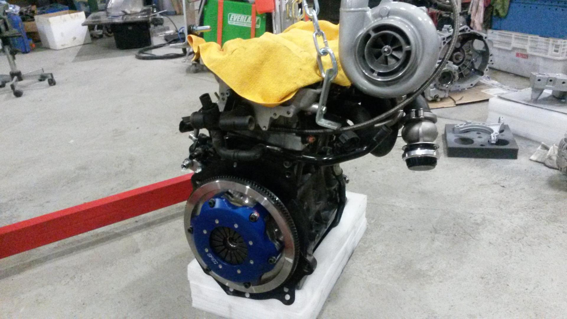 Tosiaan osien saavuttua saatiin moottori hyvin nopeasti kasaan ja keulille. Tämän jälkeen päästiin samantien testaamaan, kuinka hyvin sitä tilaa tuli tehtyä tuolle pakoputkelle. Ja hyvinhän sitä oli, 100mm putkella väännettiin koko downpipe, josta supistettiin 76mm ja yhdistettiin jo olemassa olevaan putkeen. Screameri väkerrettiin tilanahtauden sallimalla tavalla.
