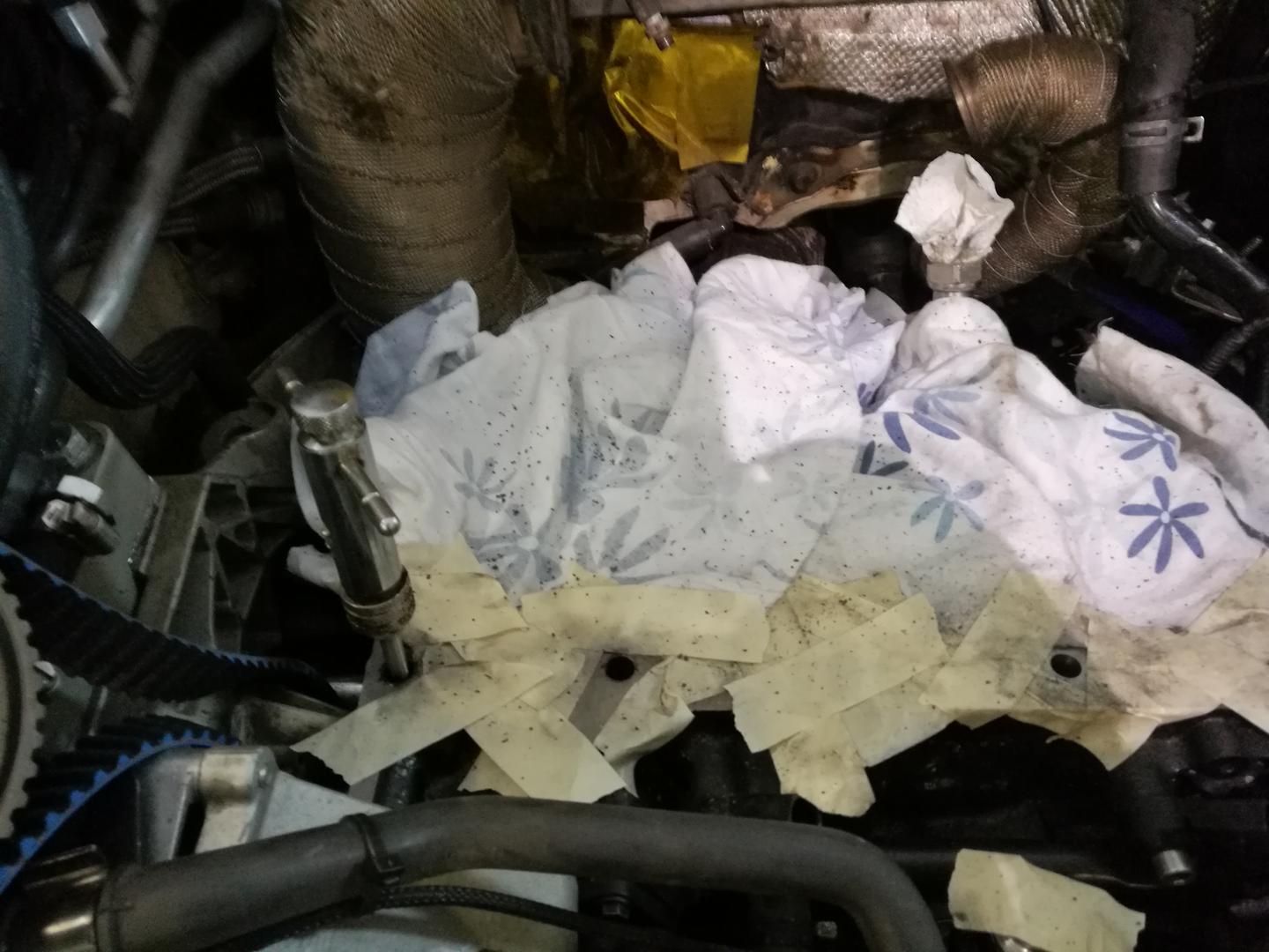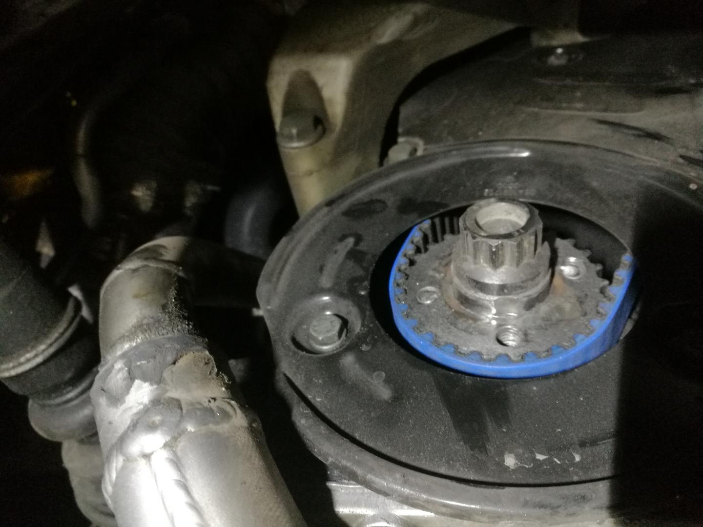 Löytyi tiivisteestäkin hieman vikaa. Oli vahva ajatus tuosta kierteistämisestä, kunnes vertailin uusia pultteja. 058 lohkossa kierre alkaa lohkon tasopinnasta ja tässä uudemmassa 06A lohkossa 20mm tasopinnan alapuolelta.