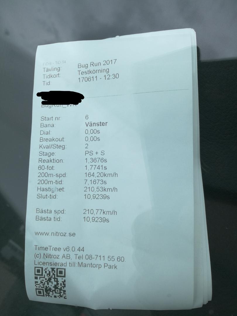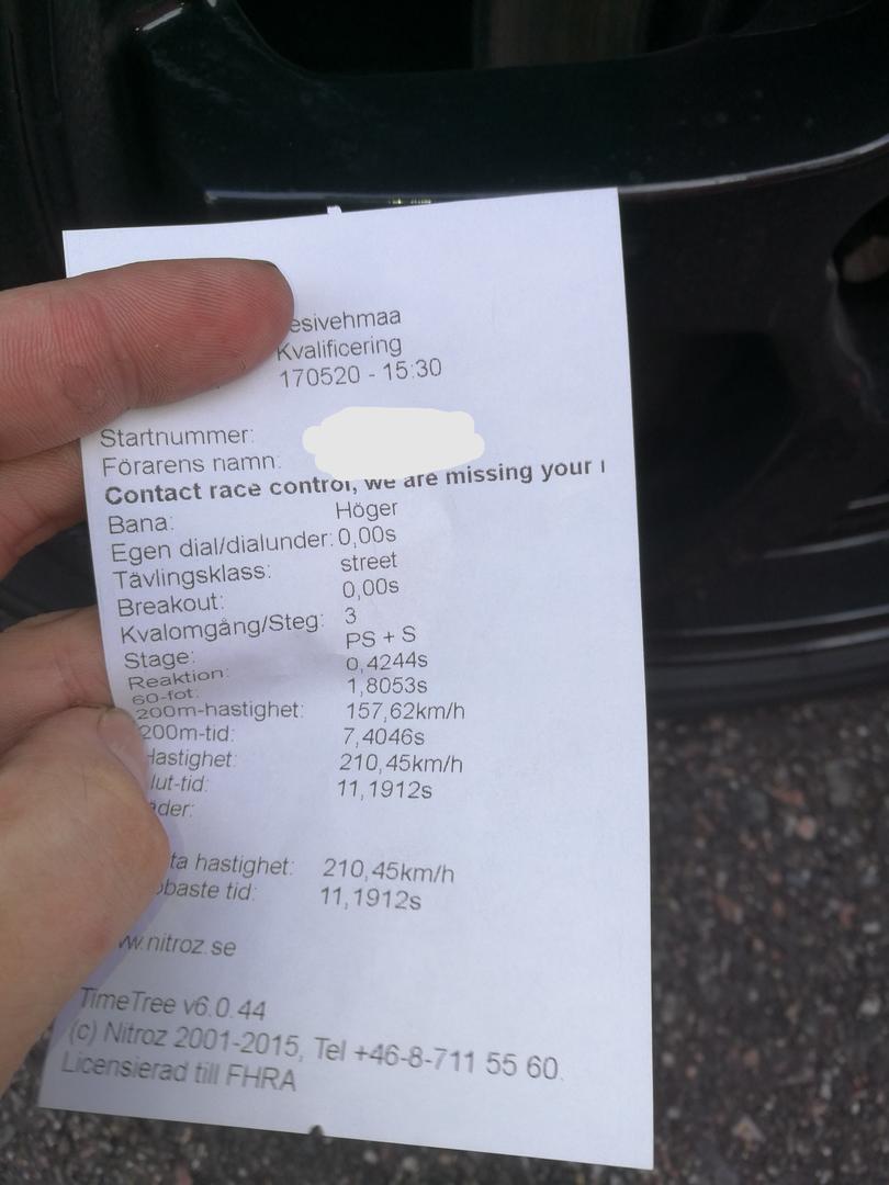 Ensimmäisellä vedolla 11.5s / 205 km/h, josta 2 vaihteella sutimista.