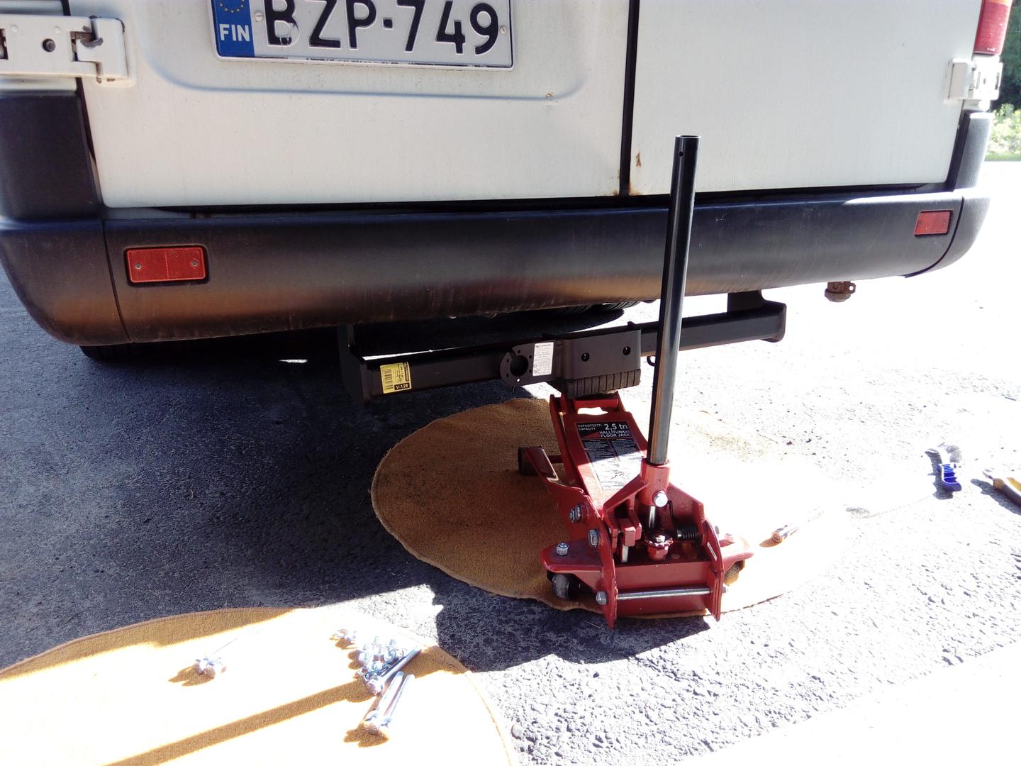Sain myytyä tuon peränostimen, se kun oli vähän epäkäytännöllinen ja sijoitin siitä saadut rahat koukkuun, edullinen ebay löytö. Kerrankin oli helppo projekti, poislukien se vtutus kun oot selällään auton alla ja silmät+korvat täynnä hiekkaa. Toisaalta vasta ollaan puolivälissä, sähköt seuraavaksi. Ja sitten pitäs päättää että meenkö autokouluun ajamaan een c1 vai d1 perään...