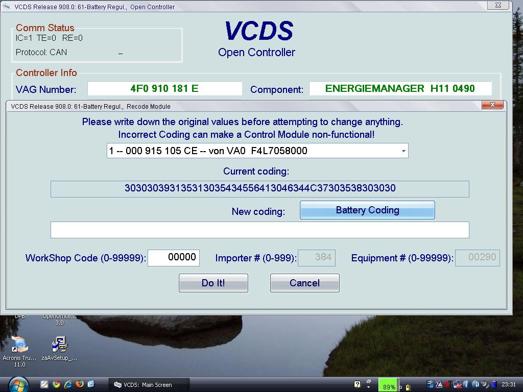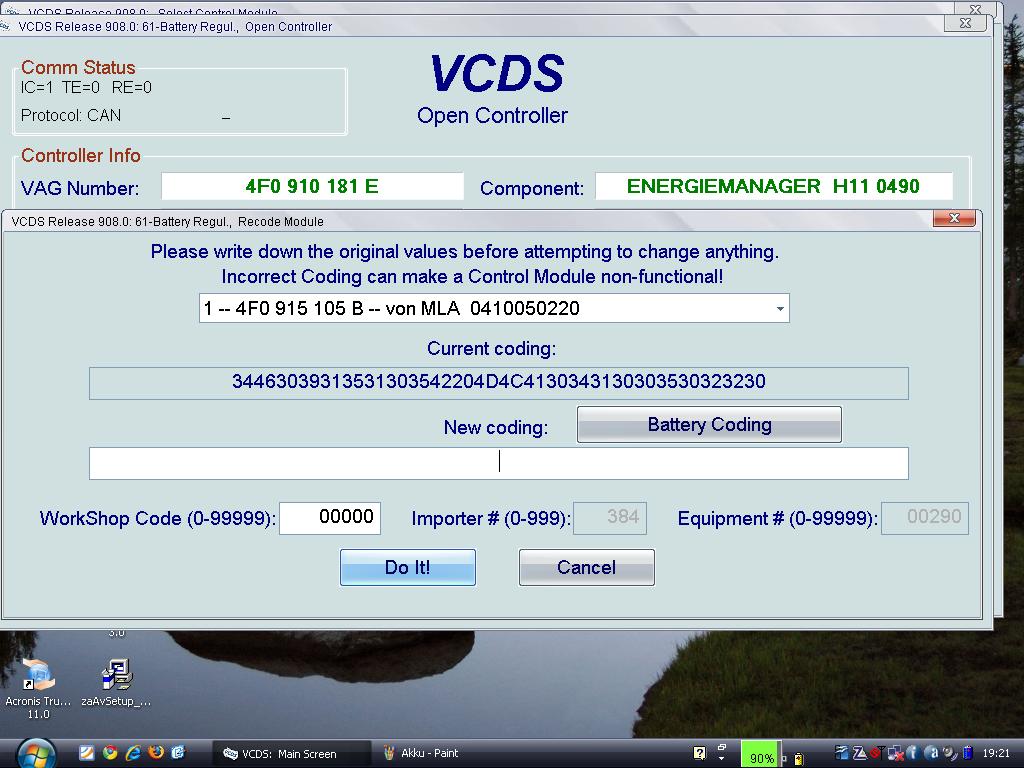 Edit: Tosin KimmoL;n tapauksessa on yksi virhe, eli koodi on otettu jostain muusta akusta kuin autossa kiinni olevasta. Silloin on aivan sama tekeekö koodausta laisinkaan. Koodi pitää olla siitä akusta joka autossa on, valmistaja kohtaisia eroja on paljon, jolloin koodit ei käy ristiin.