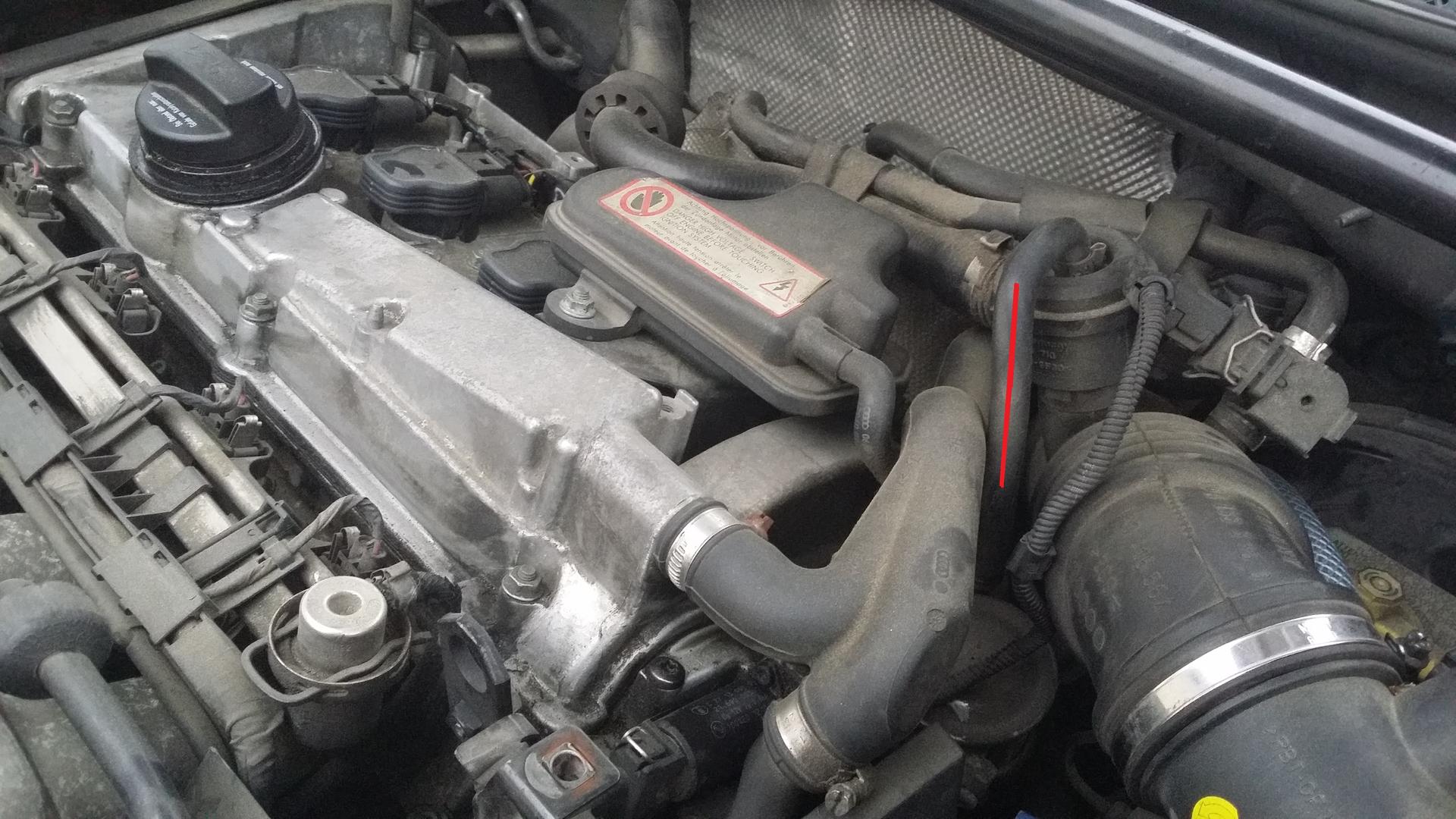 Tuo mihin nuoli osoittaa on N75-venttiili. Siitä hieman vasemmalle on by-pass, ohjauspaineen letku menee siihen venttiilin päälle. Ota siitä t-haaralla painemittarille.
