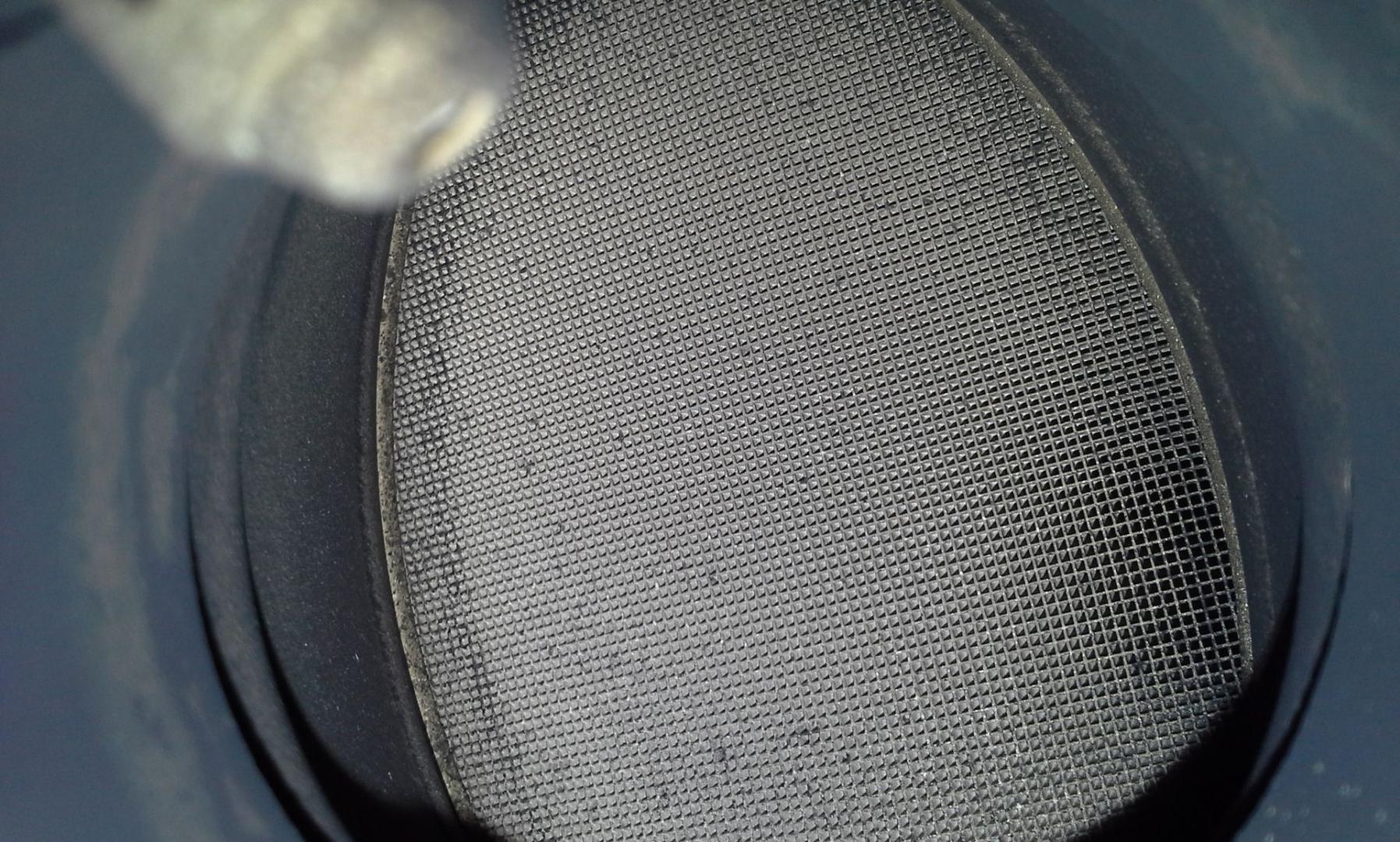 Johtuu varmaan kameran kuvakulmasta, että näyttää olevan tukossa. Jokaisessa reiässä näkyy varjo samalla tavalla. Tuolta näyttää oikeasti tukossa oleva katalysaattoori: http://www.audiclub.fi/audifinns/sho...1&postcount=27