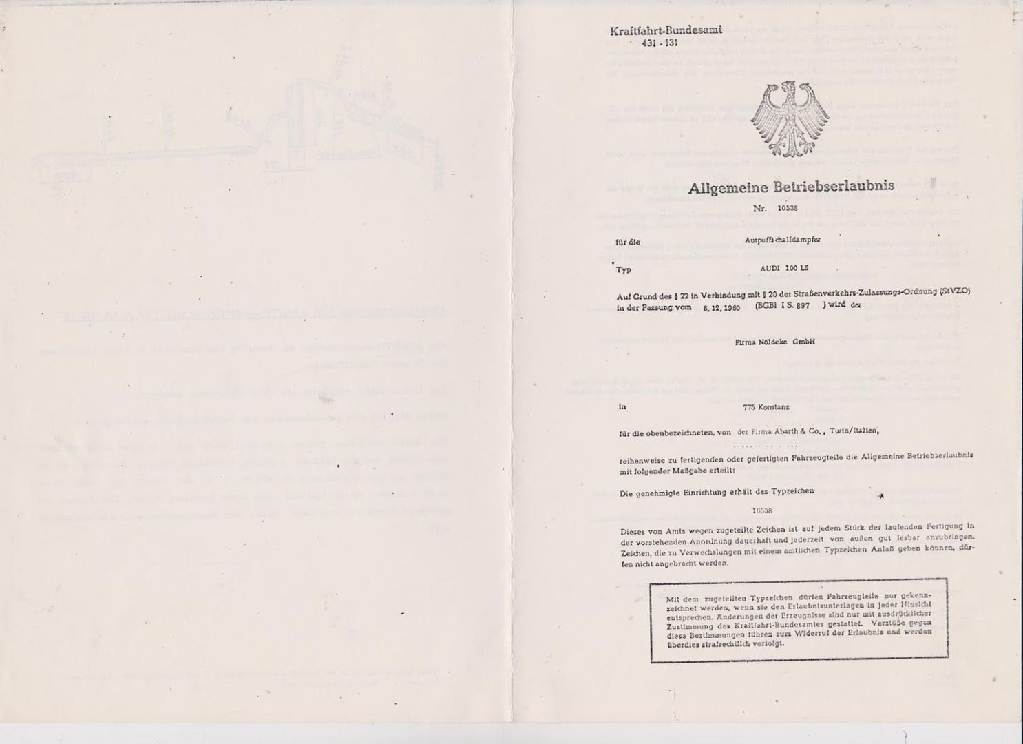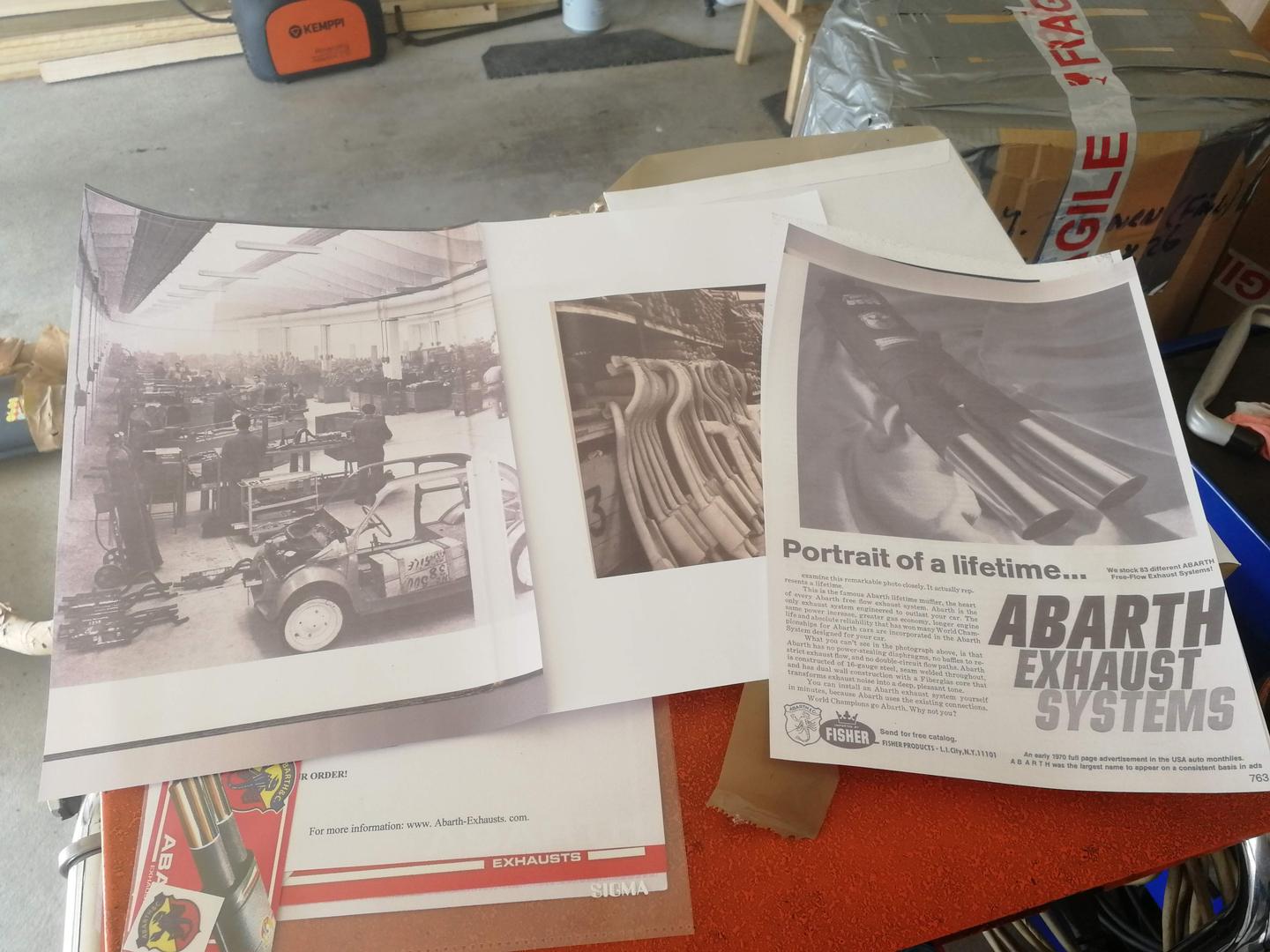 Mainitsin tuosta pakoputkesta. Sieltä on tulossa jotain melko mielenkiintoista. Ihmettelin, kun liikkeestä tuli ABE todistus putkistosta (kuvat). Tuo on Abarth:n tekemä putkisto eli ei alkuperäinen. ABE todistus on oikealta ajalta ja putkisto ollut aikoinaan varmaan melko harvinainen, mutta ei tuo taida kovin hyvin museoauton alla mennä. Pitää nyt ihmetellä kun se saapuu, että eroaako tuo nyt kovin hirveästi alkuperäisestä.