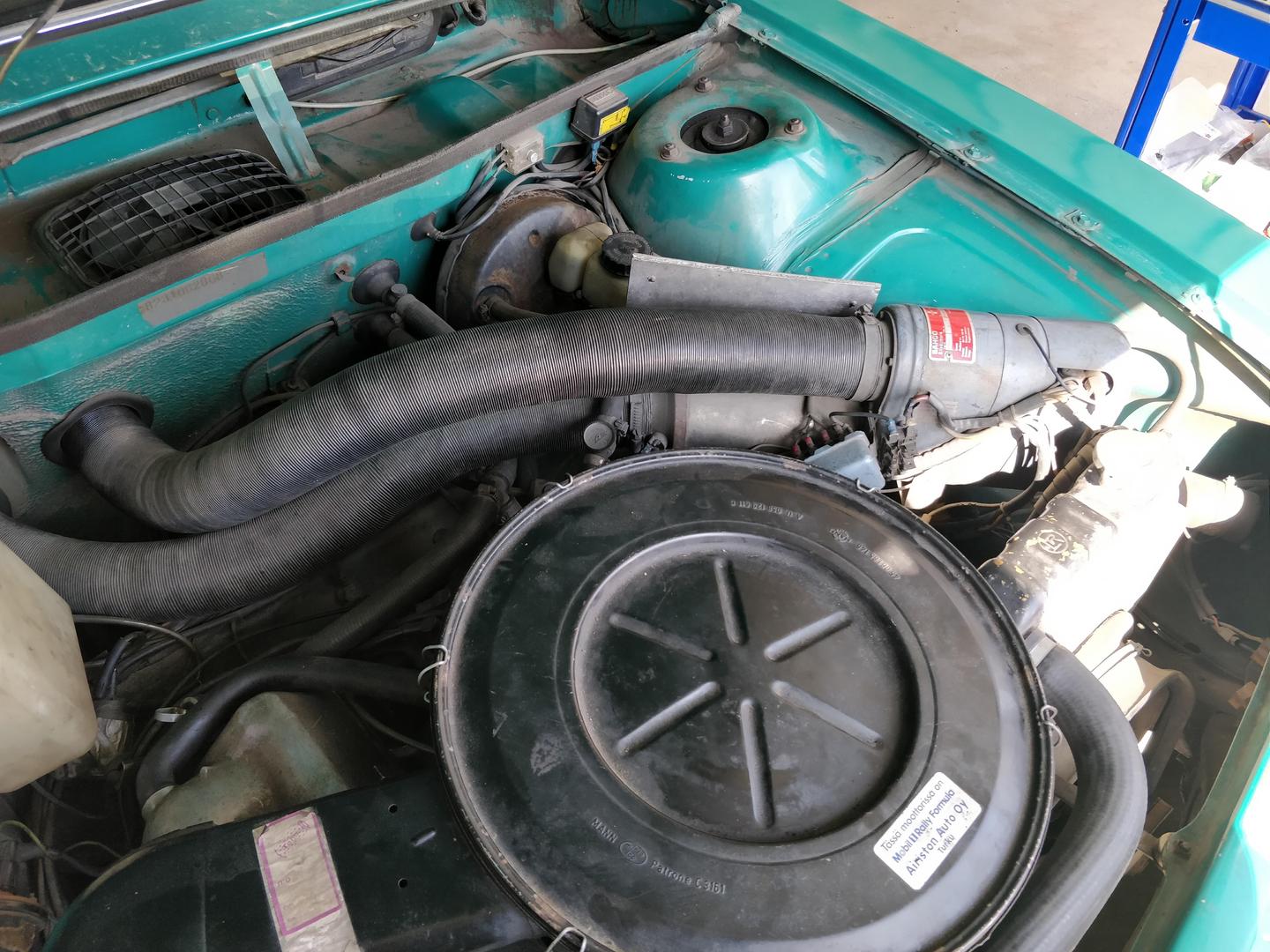 Purkkavirityksiä löytyy myös jonkinverran. Entinen omistaja ei ole korjannut (tai osannut) korjata mitään rikkimenneitä kunnolla mm. pissapojan pumpun rinnalle on laitettu toinen (orkkis ei toimi), tuo automaattinen imuilman vaihto (alipaine) on poistettu (letkut tukittu), laturi on vääränmallinen ja vinossa, tuo Bahco ei ole toiminut muutamaan kymmeneen vuoteen ja paljon muuta pientä, mutta autossa on kaikki alkuperäiset osat mukana. Huollettukin on silloin kun auto ollut ajossa.