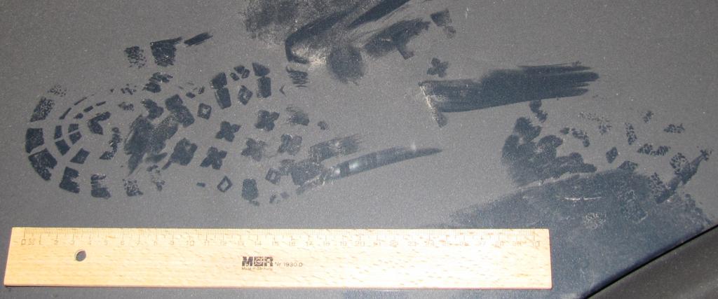 Apparin ovessa kengän jälki. Näyttäs olevan kokoa 40-41 ja lenkkarin mallinen