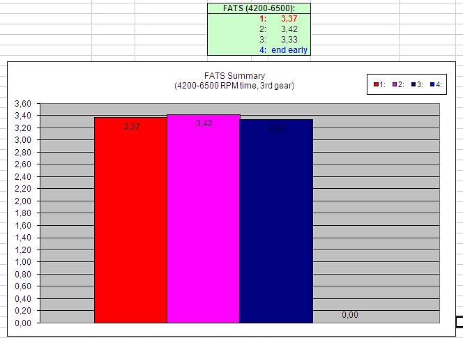 FATS = 3.vaihteella ajettu täyskaasu veto tasaisella tiellä, joka logitetaan (vag-com, ecux ym) ja logista katsotaan kierrosten 4200-6500 välissä kulutettu aika.