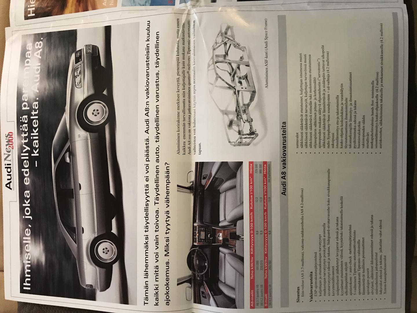 • Kaivelin arkistoistani vanhoja Audi News ja Etumatkaa-lehtiä, laitan tähän liitteeksi jos vaikka jotakuta kiinnostaa.