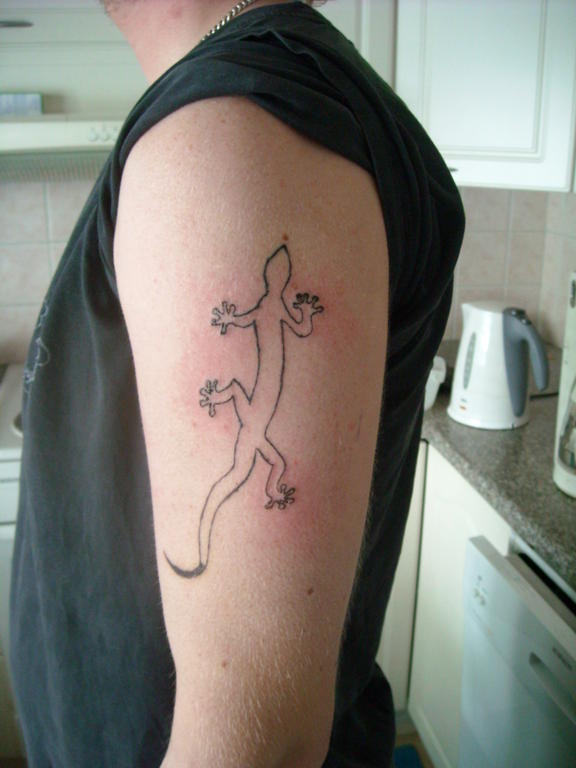On, kaksi kappaletta joista toinen isohko hauiksen yläpuolelta yläselkään jatkuen. Molemmat ns. tribaalipohjaisia, mutta taustalla kummassakin henkilökohtaisia/persoonaan liittyviä asioita, sekä muistoja. Kuvien pitää omaan silmään näyttää hyvältä, mutta yhtään kuvaa en laita ihooni pelkästään sen takia, vaan taustalla täytyy olla aina joku "tarina".