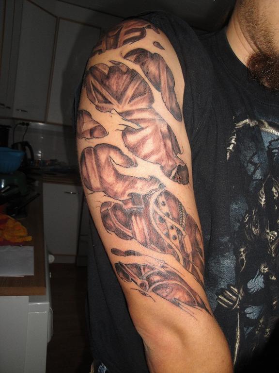 Vastaillaas itekkin kun juuri tuli aika varattua kuvan tekoa varten. Vasempaan käsivarteen pitäis joku sopivan kokonen kuvatus maaliskuussa ilmestyä. Vaihtoehtona oli yläselässä jo olevan pienehkön vanhan kuvan jatkaminen, mutta nyt haluan ottaa semmosen mikä hieman pilkottaa t-paidan alta...
