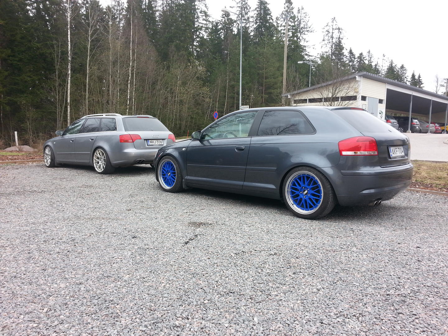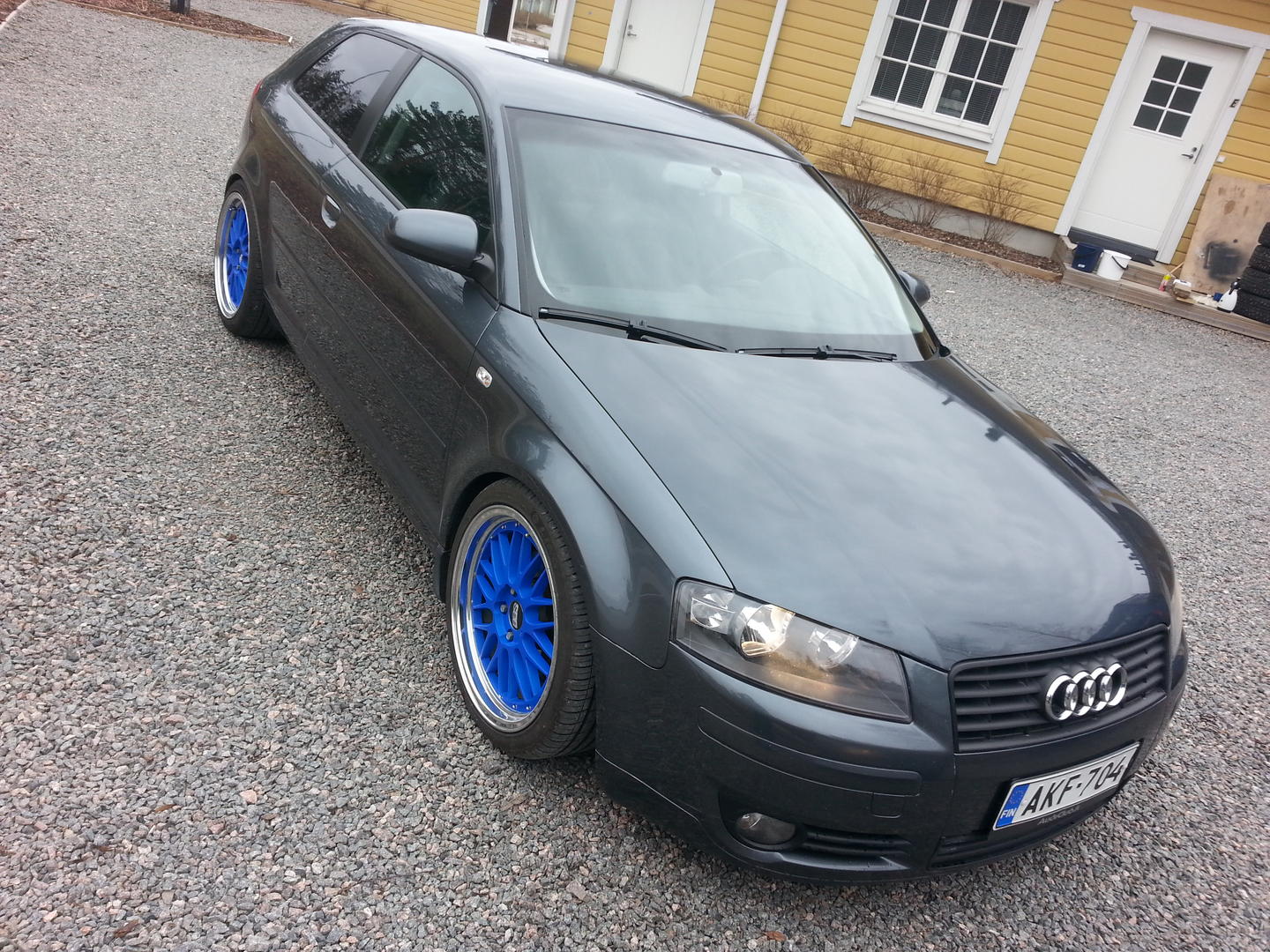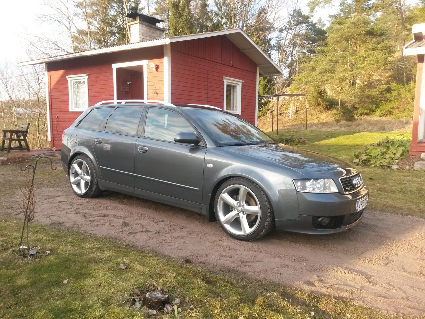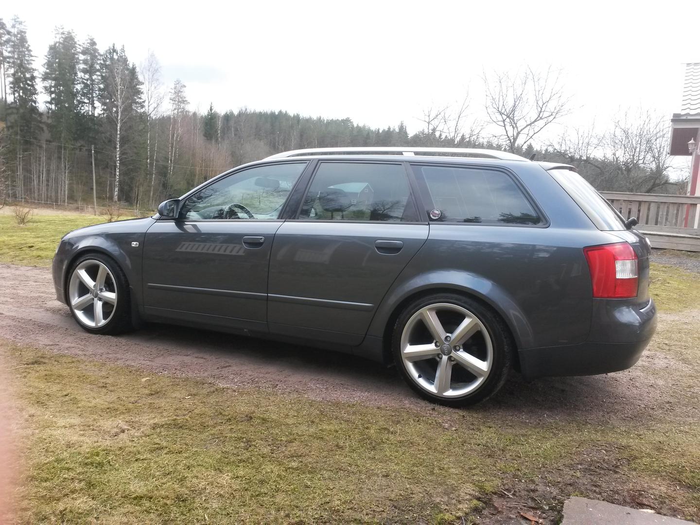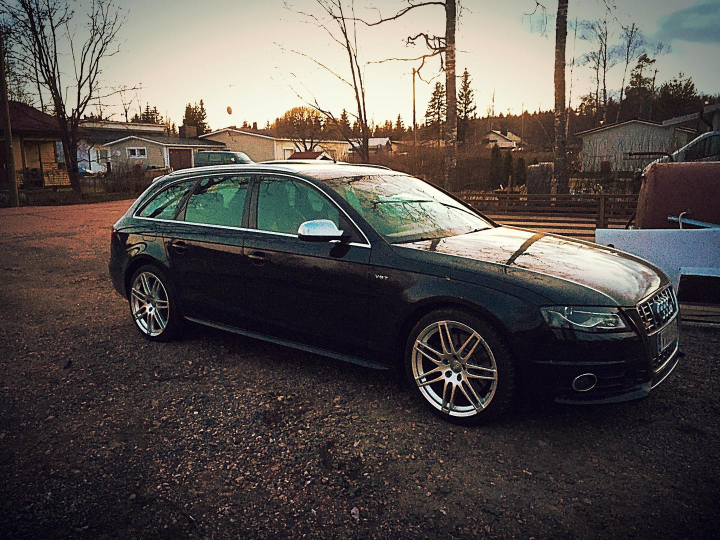 • Ilmeisesti TT:n jotkin s-line vanteet, netissä näytti löytyvän myös B8:n listoilta. Nuo siis 18x9" ET52. Itse pidän noiden vanteiden yksinkertaisuudesta ja OEM-henkisyydestä. On tuo ihan ryhdikkäästi nyt, luonnossa perä on alempana kuin kuvasta vaikuttaa, ei kuitenkaan ihan vaaterissa.