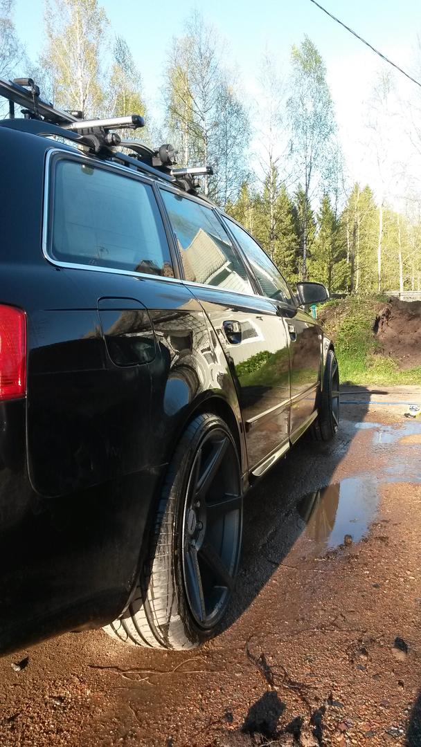 Ilma-alusta VCDS.llä tapissa. 19x9" ET33 Speedlinet. Madalluslinkit tulee kun jaksaa muokata sopivaksi. Yllättävän hyvä ajaa Dynamic-modessa motarilla täyslasti päällä. Eikä yhtään vikailmoitusta. Nii joo ja 3.0TDI, Findieseliä ja sen semmosta...