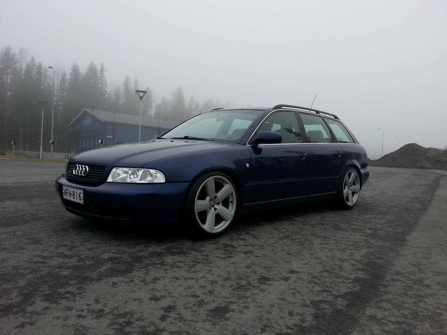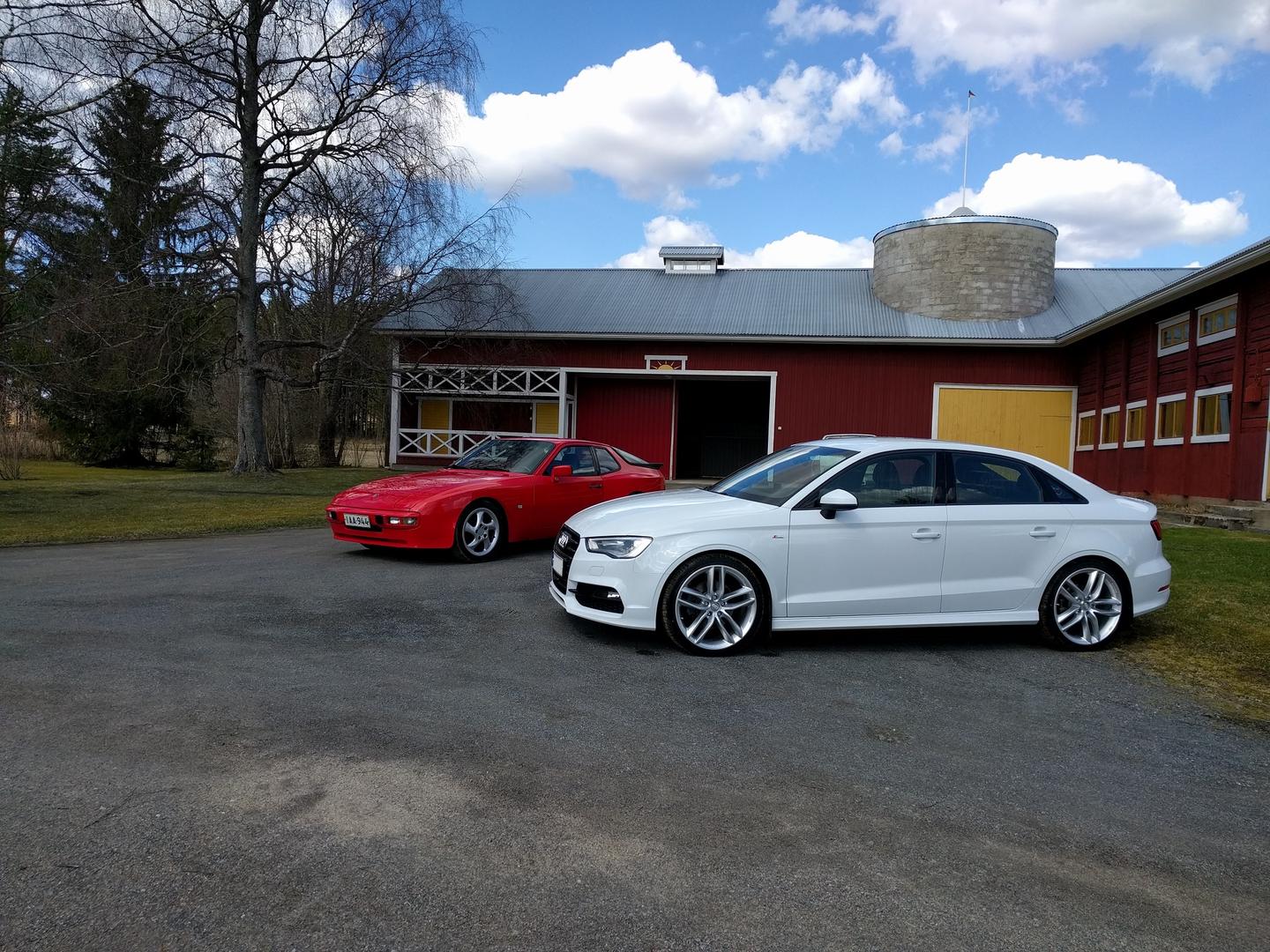 Audissa uudet kesävanteet(BBS SX) ja possu kaivettu talvipeiton alta esiin.