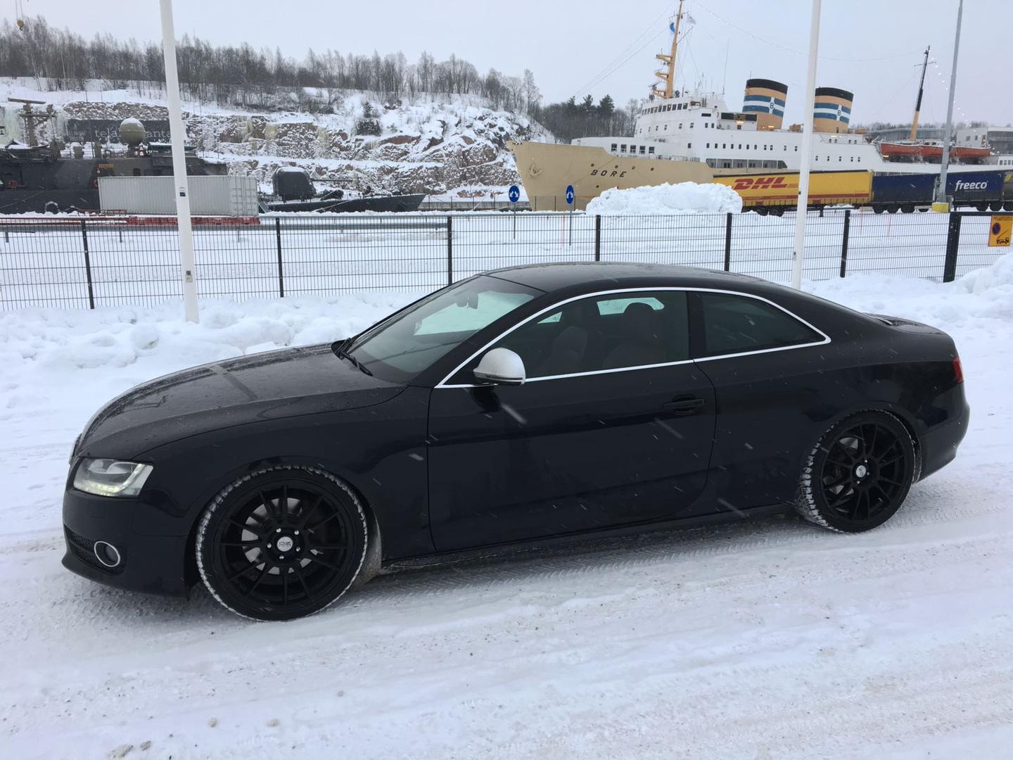 Auto kävi tiistaina huollossa ja pesussa, niin oli pakko mennä ottaan eilen muutama kuva ennenkuin teitä aletaan taas suolaamaan. Talvivanteet 18" peelers replicat ja renkaina kohta viisi talvea ajetut Continental ContiIceContactit koossa 245/40. Yllättävän hyvä pito ollut vielä.