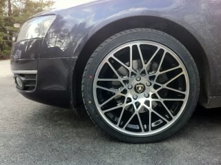 Nämä kuvan vakiovanteet vaihtuvat vielä tällä viikolla old RS6 -mallisiin samassa 17" koossa ja jäävät talteen talvivanteiksi mahdollisen Suomeen paluun varalta.