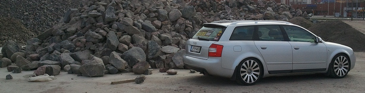 Vanha 256tkm ajettu -99 B5 1.8Tq Avant vaihtui hitusen uudempaan. Kyseessä loppuvuodesta 2003 rekisteröity, 2004-vuosimallin B6 1.8Tq Avant S-line BFB-koneella, ensimmäiseltä omistajalta täydellisellä merkkiliikkeen huoltohistorialla 135tkm ajettuna. Penkkeinä on sporttinahat, ratti on monitoimimalli eli nelipuolainen S-linestä huolimatta, muita varusteita mm. urheilualusta, 4x sähköiset lasinnostimet (vai onko tuo B6 vakiovaruste?), xenon-ajovalot, Symphony-stereot, FIS, aurinkoverhot takaovissa, metalliväri...