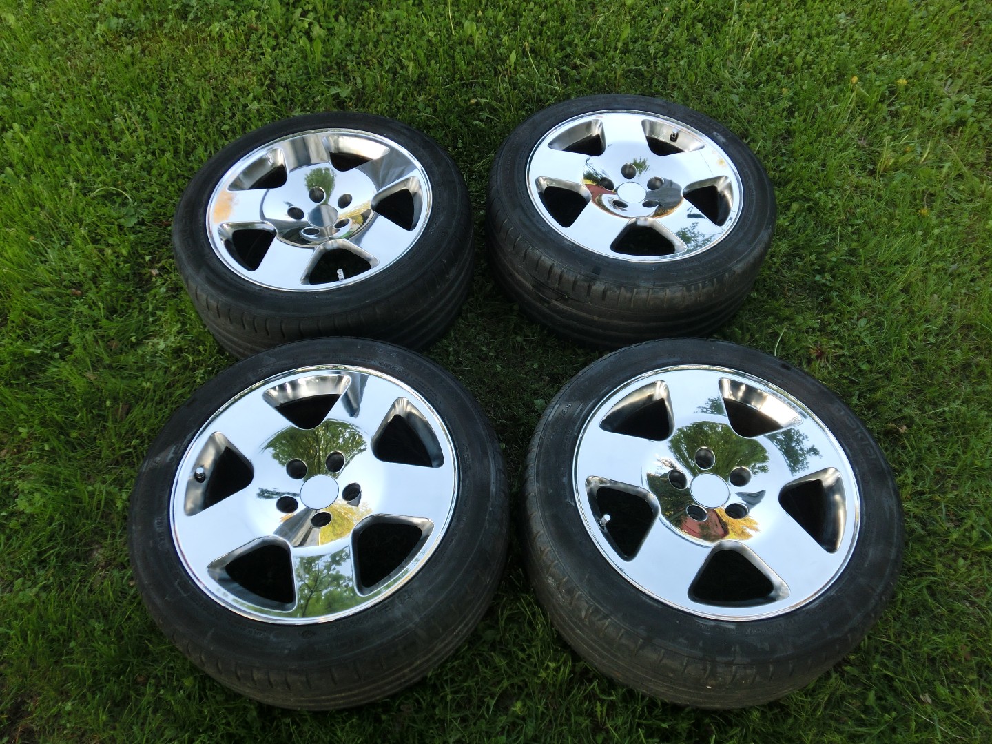 • Tuli tänään rata-ajelun sijaan vietettyä iltapäivä porakoneen jatkeena entisöiden kesävanteita ja jopa ruuvattua ne välikelinrenkaiden tilalle, kerkesin siis vaihtamaan kesärenkaat hyvissä ajoin ennen juhannusta :) Rengaspaineiden tarkastusreissulla nappasin parit kuvatkin, pokkarilla ja käsivaralta illan hämärässä. Nyt kun noita vanteita on hinkattu enemmän kun laki sallii nii nehä voisi vaikka myydä.