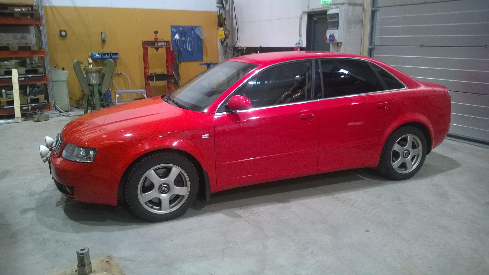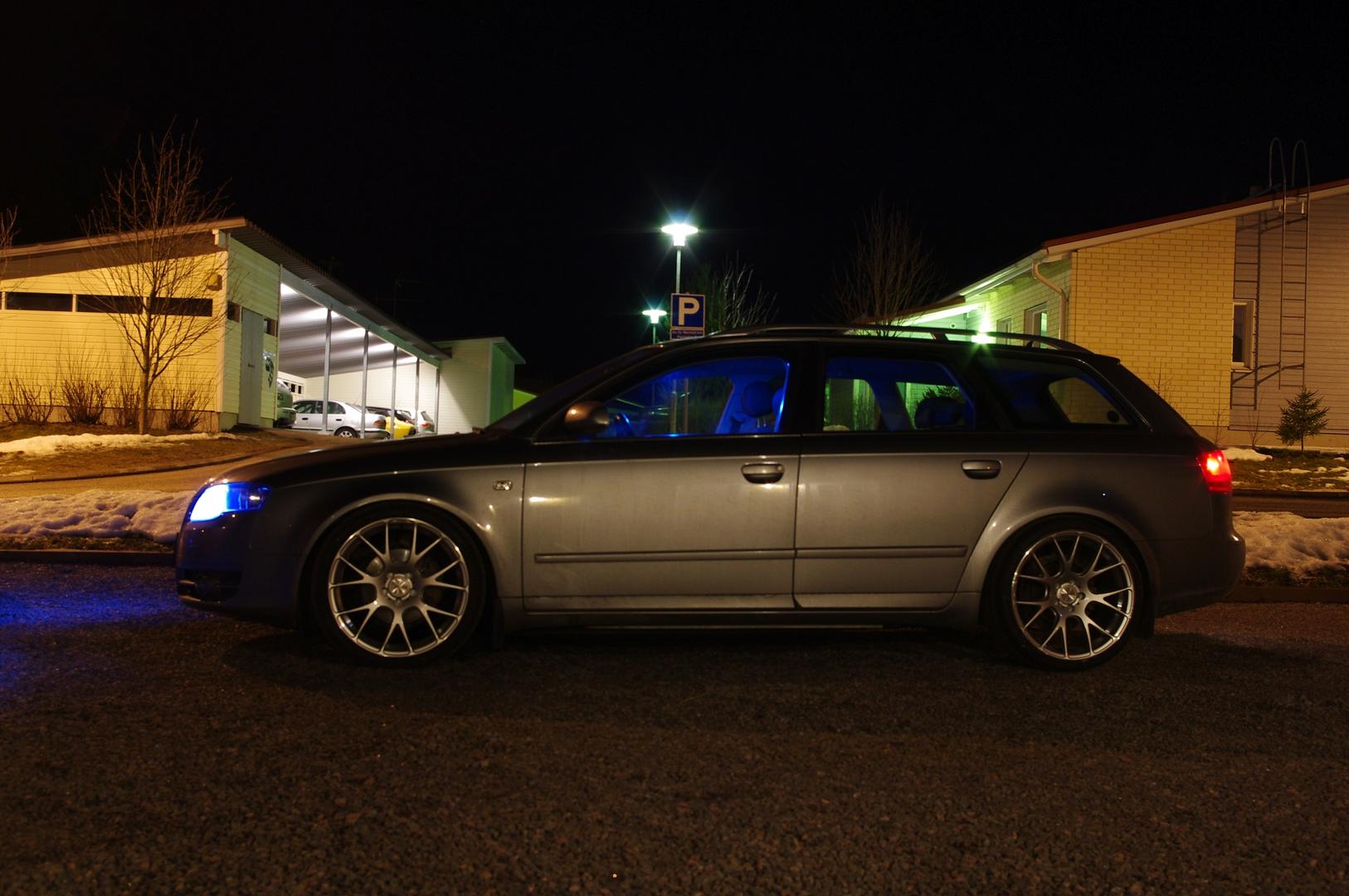 Siin on mun Audi kesävanteilla, Keskin KT7 17"x9" ET 35 ja renkaat 215/45-17. Madallusta on tällä hetkel n. -80mm/-70mm. Vähä toi on huono kuva kun kännykällä otin https://fbcdn-sphotos-b-a.akamaihd.n...16649660_n.jpg