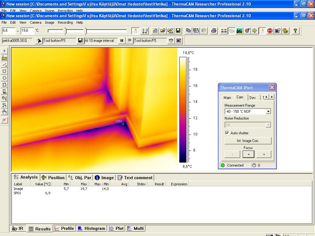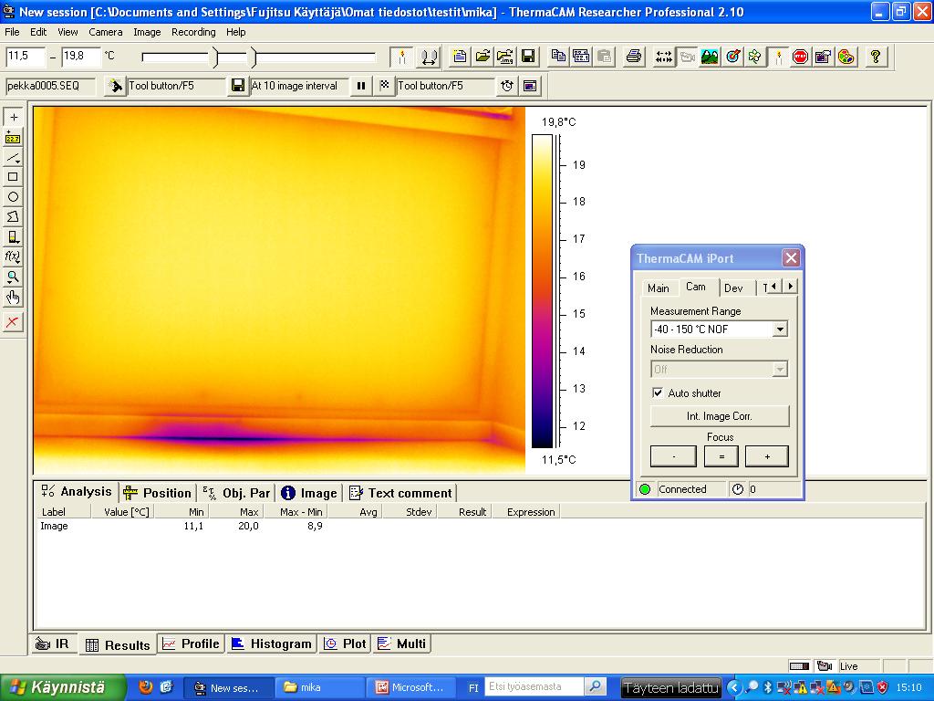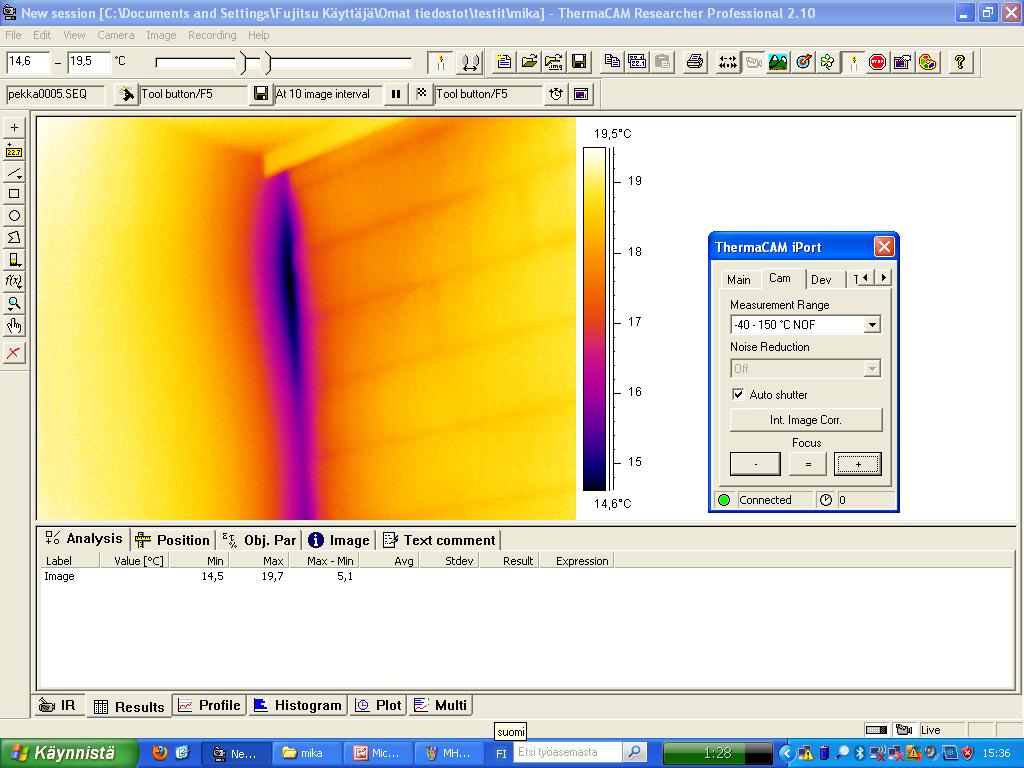 Äkkiseltään nuo kuvat 3 ja 4 on normaaleja. Tuo automaattinen väriskaalan venytys kuvassa olevan lämpötilan mukaan tekee vaan kaikesta pahannäköistä :-) Paljon oli ulkolämpötila mittausten aikana?