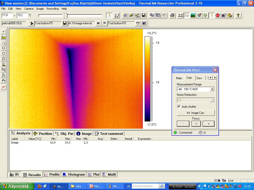 • Helsingissä ei ole vielä ollut kuin yhtenä viikonloppuna pari päivää pakkasella. Silloin totesin, että pakko tehdä itse jotain, kun eivät muuten usko. Seuraavaksi viikonlopuksi sain lämpökameraa lainaan, mutta silloin lämpötila oli muutaman asteen plussalla.