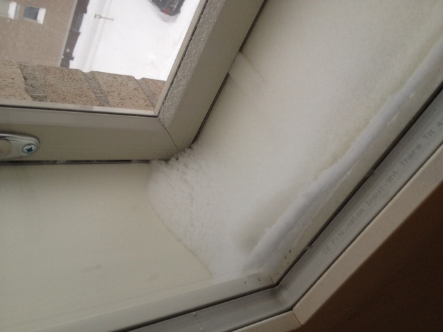 • Eihän tuossa lämpövuotoa ole kun lumet ei sula. Mutta ulkopuitteen tiivistyksessä on toivomisen varaa.