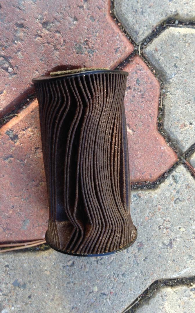 Tänään vaihtelin öljyt tuohon omaan ässään ja tuossa on marmorilta ostettu suodatin vuoden ja 8000km ajettuna. Uusi suodatin näytti olevan vielä 5mm pidempi, kuin tuo vanha.