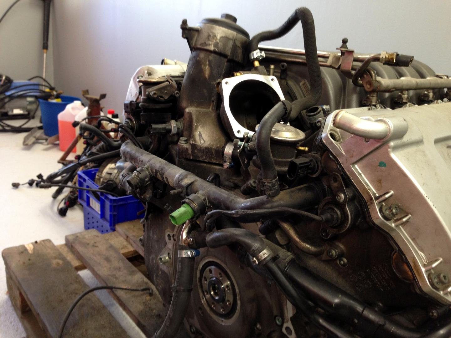 Tuo varaosamoottori olisi tarkoitus purkaa osiksi ja katsoa saako siitä vielä ehjän kasattua. Se on siis rikkinäisenä purettu jostain b7 ässästä. Jotain merkkejä tuossa näkyy olevan että kuskinpuolen esikatin päällä olisi joskus pieniä liekkejä näkynyt, kun jotain sulanutta tahmaa kannen päädyssä näkyy ja jonkin verran nokea. Mutta tästä ehkä myöhemmin lisää.