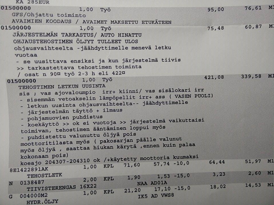 Voikos tuo letku mennä jos ajaa painaumaan tiessä 80km/h? Yleensä olen hiljentänyt kun on paikka tiedossa, mutta juhannuksen jälkeen oli hiukan aivot narikassa. Meinaan vaan, että voisko tuosta saada korvauksia jostain. Menis vaan jotenkin sopivasti kun nelostien alussa tuohon ajoin ja Korson liittymästä kun ajoin alas, rupesin ihmettelemään huutavaa pumppua.