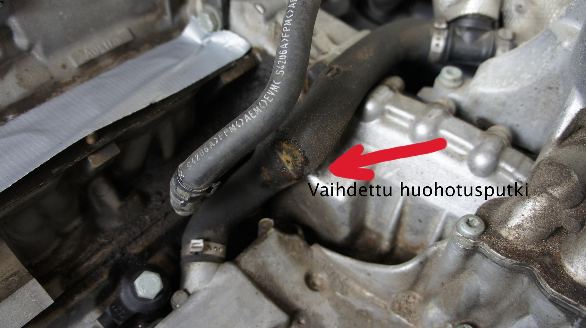 Huohotinputki imusarjan alla ei ole välttämättä näköjään noin 200tkm käytöllä vielä pilalla. Ei kyllä nättikään, mutta tiivis ja kunnolla kiinni.