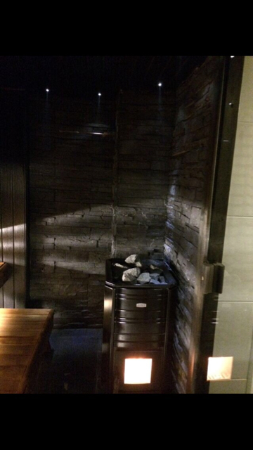 Valaistuksena lauteiden alla 3kpl 2x36W loisteputkivalaisin + selkänojissa 9xLED ylöspäin suunnattuna, kiukaan ympäristössä katossa 4xLED alaspäin suunnattuna.