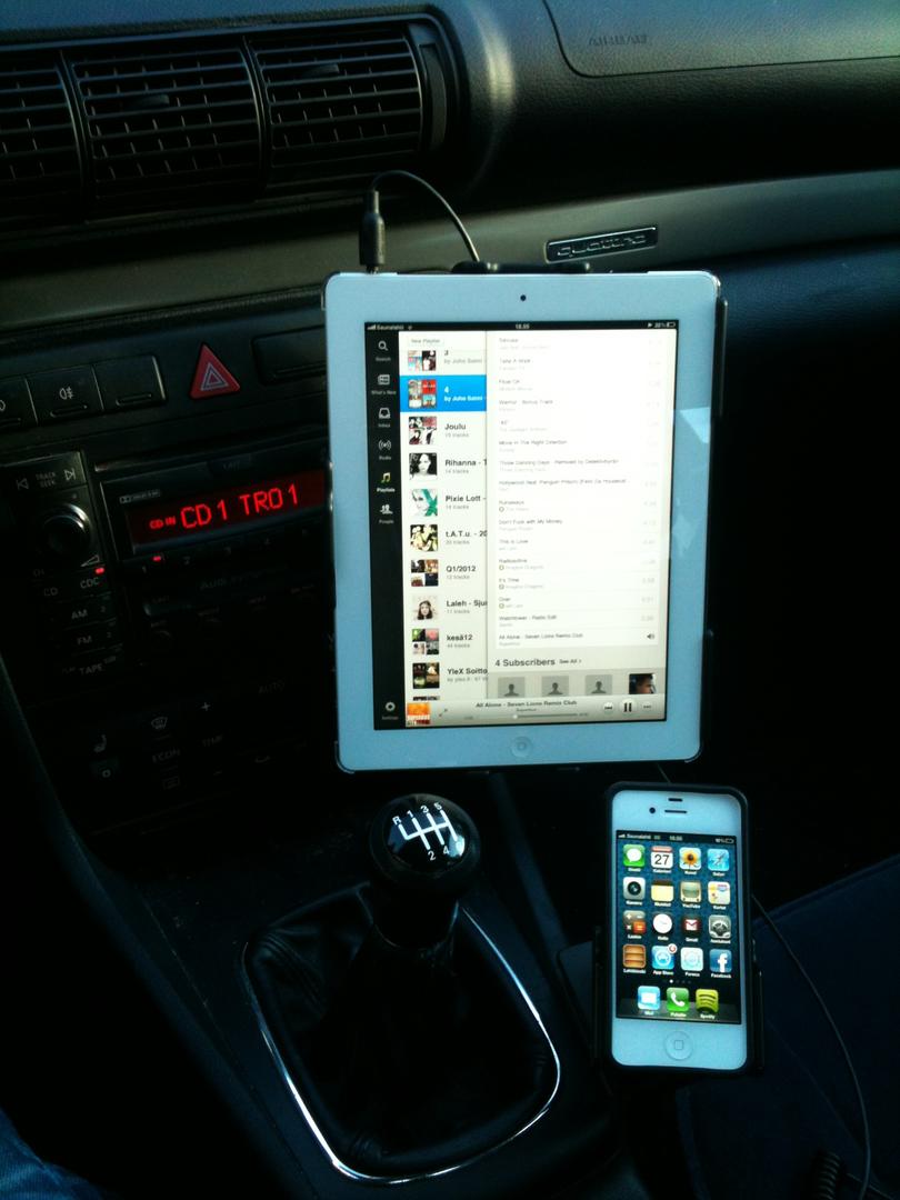 Mikäli autotelinettä pädeille, android tai ipad, on haaveillut, niin kajaritelineitä etsiessä törmäsin tällaisiin mistä varmaan tuunaisi edullisesti telineen autoon.