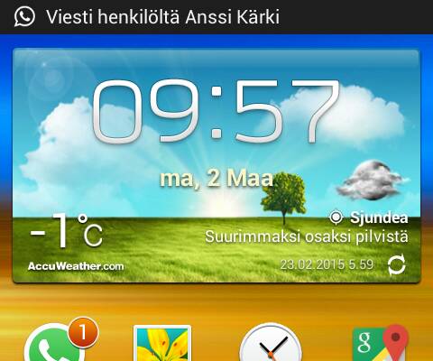 Onko muilla lollipoppiin päivityksen jälkeen ilmestynyt lukitusnäyttöön S healthin pedometer (askelmittari) tai "sijainnin" lämpötilaa? Itseä häiritsee suunnattomasti kun kävin viikko sitten Kurikassa ja näyttö näyttää edelleen Kurikan/Jokipiin lämpötilaa eikä lämpötila edes muutu, vaikka olen yrittänyt päivittää sijainnin Tampereella moneen kertaan, mutta näytössä pysyy Kurikka. Kyseessä siis vain lukitusnäyttö, eikä normaali widget.