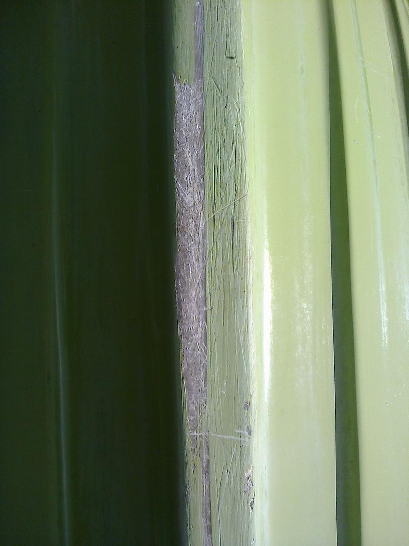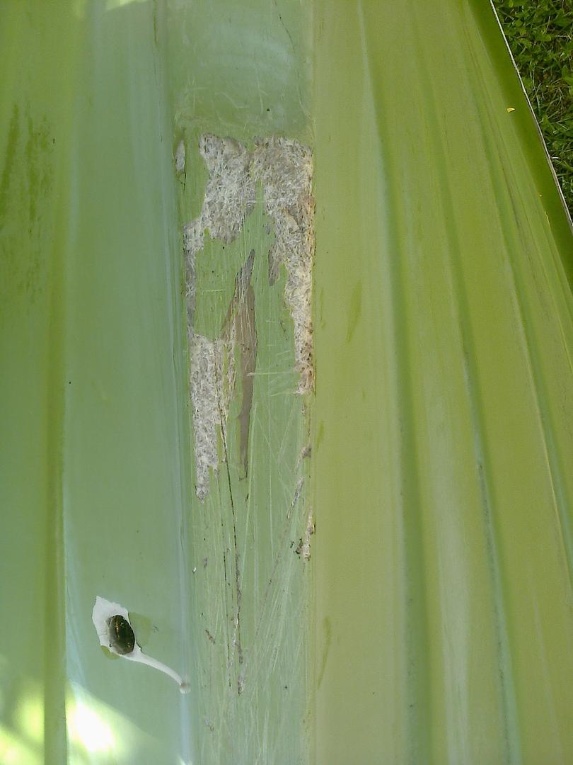 Vanha lasikuituveneen pohja kaipaa jonkinasteista kunnostusta.