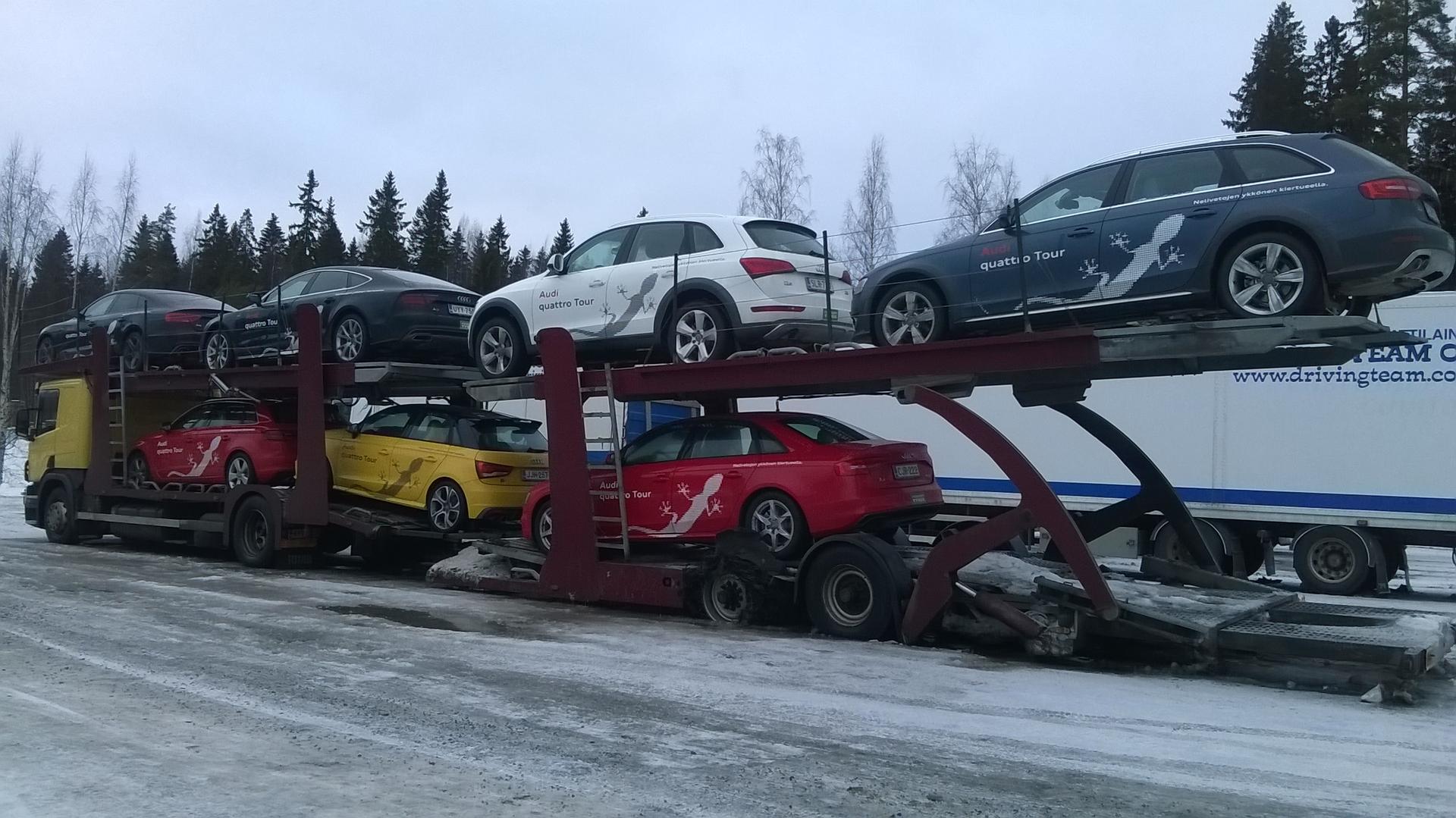 Aamulla noin klo 7 Kajaanintiellä meni pohjoisen suuntaan trailerilla valkoinen kantticoupe. Taisi olla Audi Sport värityksellä. Olisikon voinut olla tämä?: http://acf.kuvat.fi/kuvat/Tapahtumat...3_CA2_7578.jpg