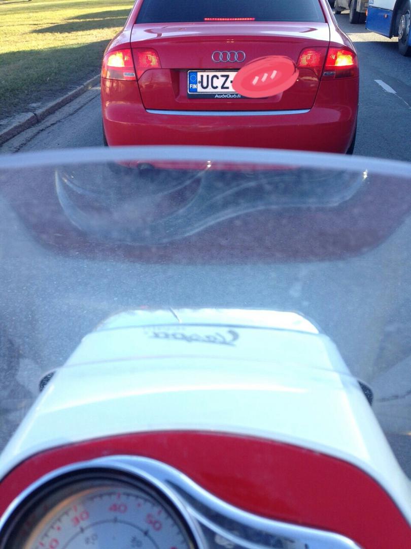 Rusalla tänään näkyi oikein urakalla kilvenalusia. Joku punanen audikuski tais morotellakkin :) Itse Tummansinisellä B6:sella..