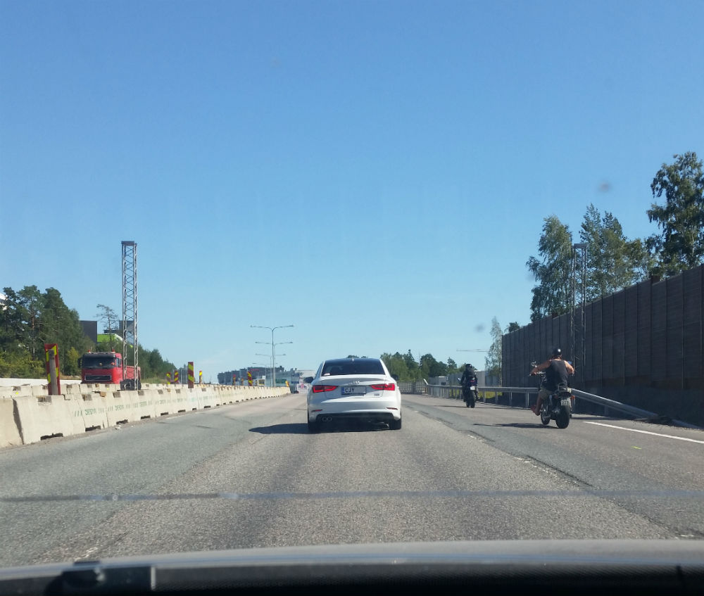 Kuka tuli Hki Pitäjänkirkon suunnasta 2045 siitä valotetusta alikulkusillan ali farkku A6:sella. Kilven alunenkin oli ainakin edessä :)