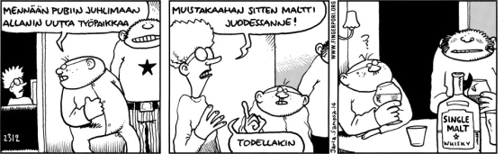 PS. Muuten eräs absolutisti kaveri ihastui viskeihin Skotlannin reissulla. Vahvempia viskejä nuuhkiessa saa jo melko ison määrän aromjea esiin. Tämä kaveri tosiaan nykyän innokkaasti haistelee eri viskejä, ja osaa jo nykyään heittää pelkän tuoksun perusteella melko syviä analyyseja viskeistä, vaikka ei alkoholia koskaan juokkaan. Eli viskeistä nauttiminen ei tosiaan vaadi välttämtää kännien vetoa.