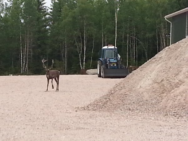 Hirven kanssa juttelin 20 m etäisyydellä eilen heinäpellon laidassa. Oli nähtävästi emostaan erotettu poikanen, kun ei koneita ja ihmisiä osannut enempää pelätä. Hieman huvitti kun paalaajan isä oli kauempaa kattellut ja päätellyt korvien asennosta että "kohta se hyökkää" :P Monesti olen kattellut paljon pahempiakin ilmeitä suomenhevosen naamavärkistä, eikä sekään ole kummempaa kiusaa tehnyt.